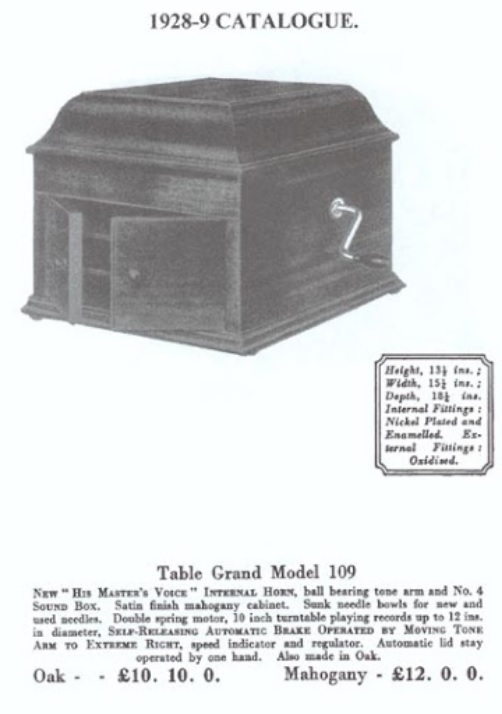 The HMV 109 is listed in the HMV Gramophone Catalogue, accessible as a PDF file, and downloadable from this page -- viewtopic.php?f=11&t=30494