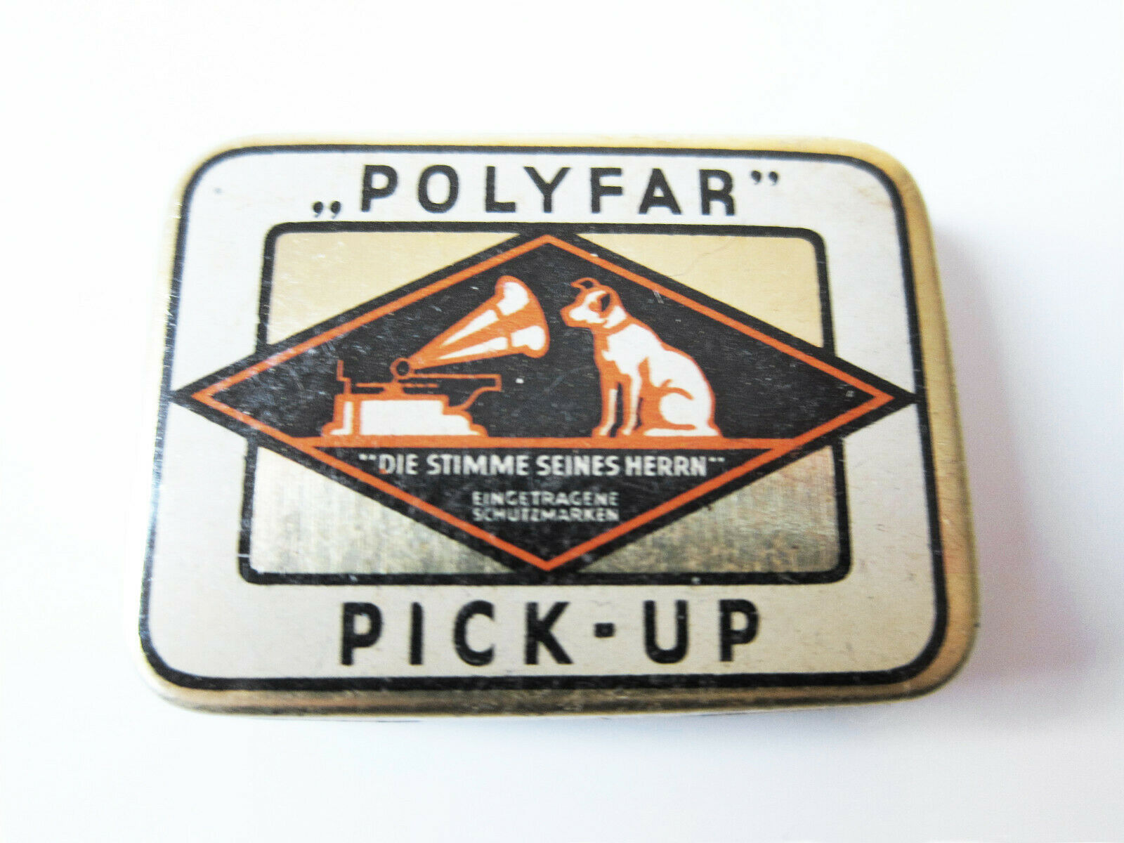 Thanks for the information - if they resumed using "HMV" in 1931 and I guess withdrew from the German market by 1938/9 it narrows down the date to a few years. Not sure why it is still shown as a "Polyfar" with an HMV logo, I would gave thought it was either a Polyfar or an HMV ....
