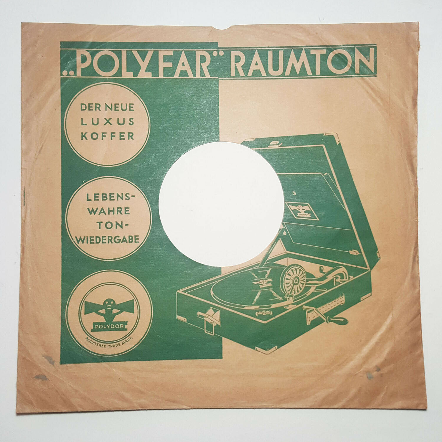 And here commes my guessing work, not founded in any evidence... except the extense advertising inside Germany of the Polydor/Polyfar brands. Created as an export mark, it also sold well inside Germany, as a side line to the more serious (or maybe more expensive) Grammophon brand. And it was a serious competitor to Electrola, as today you can find many more examples of Polydor machines than Electrolas. But the records? What? I own a hundred german sleeves from 1927-1931 for 12" Grammophon records, which advert the Grammophon, Polydor/Polyfar and Brunswick brands. Inside germany, records were branded Grammophon; I believe the Polydor records were not sold inside Germany, but I can be wrong. Outside were labelled Polydor. Polyfar is your machine, but I've also seen Polydor-branded portables for sale in Germany, as well as across Europe. Polydor had a store in Madrid which sold the records and machines. Other record stores in Madrid also sold the Polydor records, so good, german-pressed with foreign labels, or probably Barcelona pressed from our factory. But they are undistinguishable, so our spanish Polydor factory could be: 1) not pressing records, but importing pressings from germany, or 2) pressing records but under strict quality control by the germans, so the quality of records and pressings was the very same as the german Grammophon records. Suddenly in 1933 or so they disappeared from the market. A great loss, I believe.