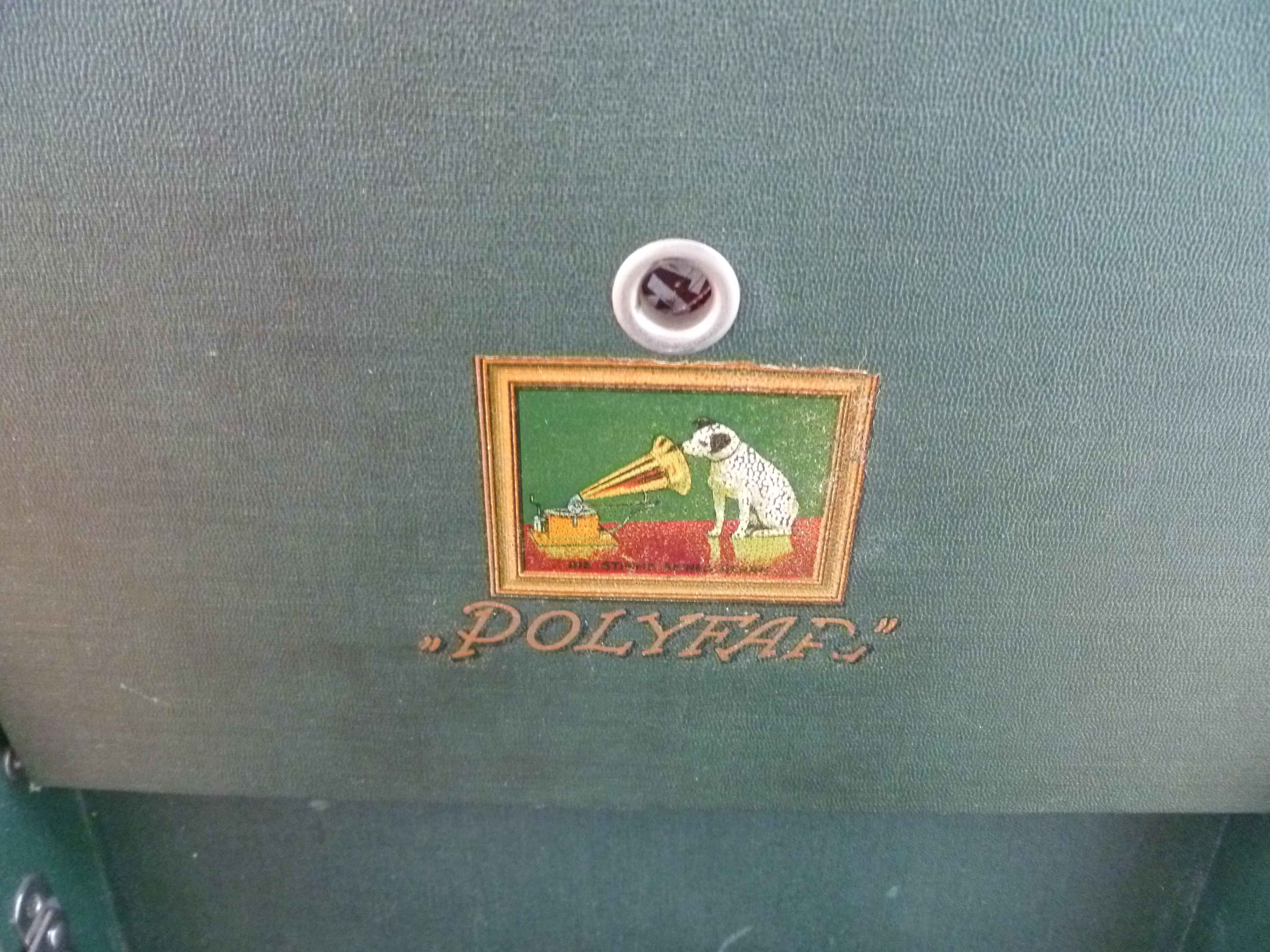 So I think your machine is one of these Polydor/Polyfar machines made in germany but for sale inside Germany, and this could explain why it carries the Nipper badge; it was a DG asset inside Germany. Outside probably you coud find the same machine but without the Nipper logo, but the well known Polydor logo (a mimick of a puppet man with two horns emerging from his mouth at either side, very 1929-déco stylish... https://russian-records.com/data/sample ... Green).jpg