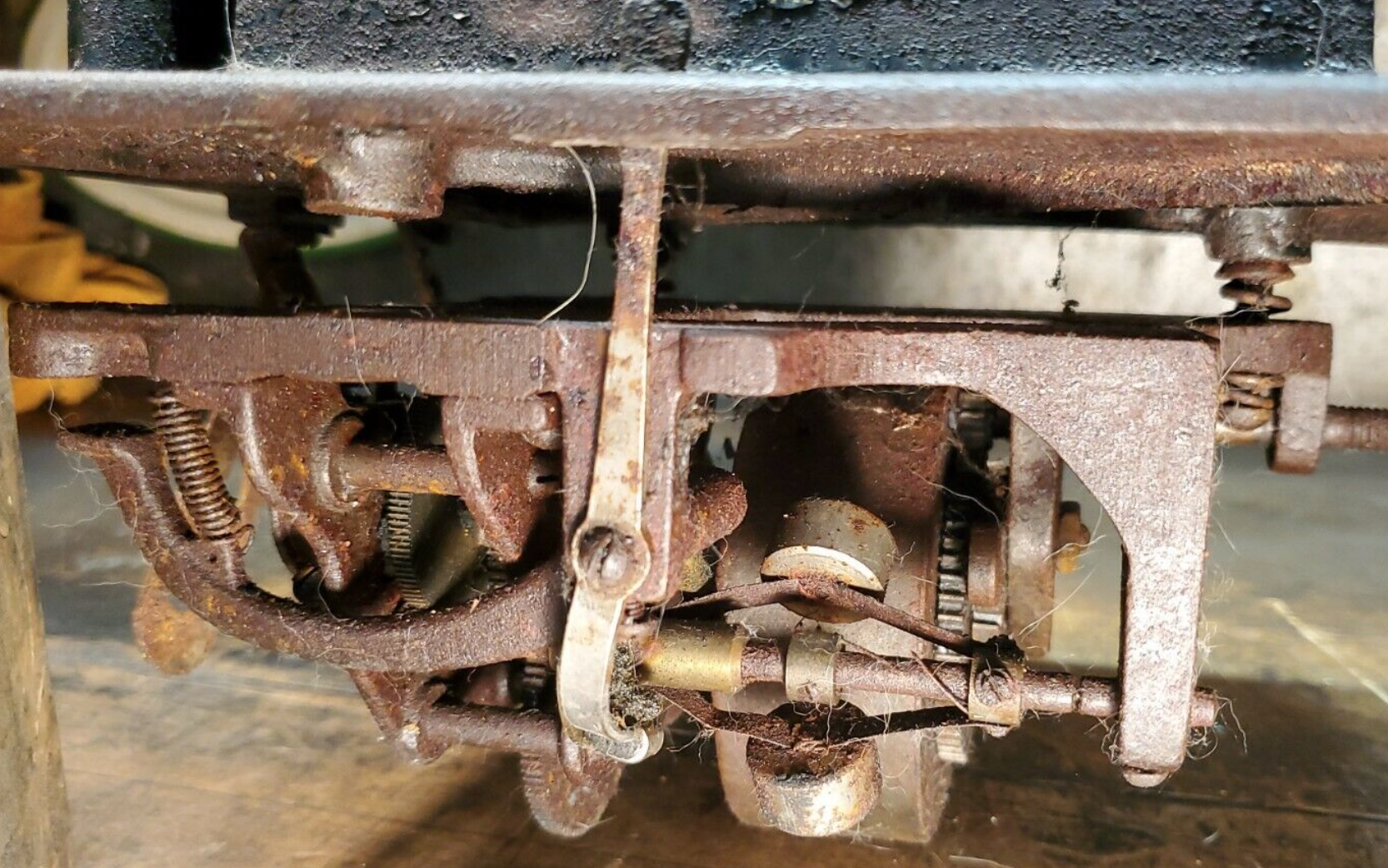 Personally, I can't begin to imagine where this was stored to get that "wonderful patina"... a little furniture polish and this is ready to go...