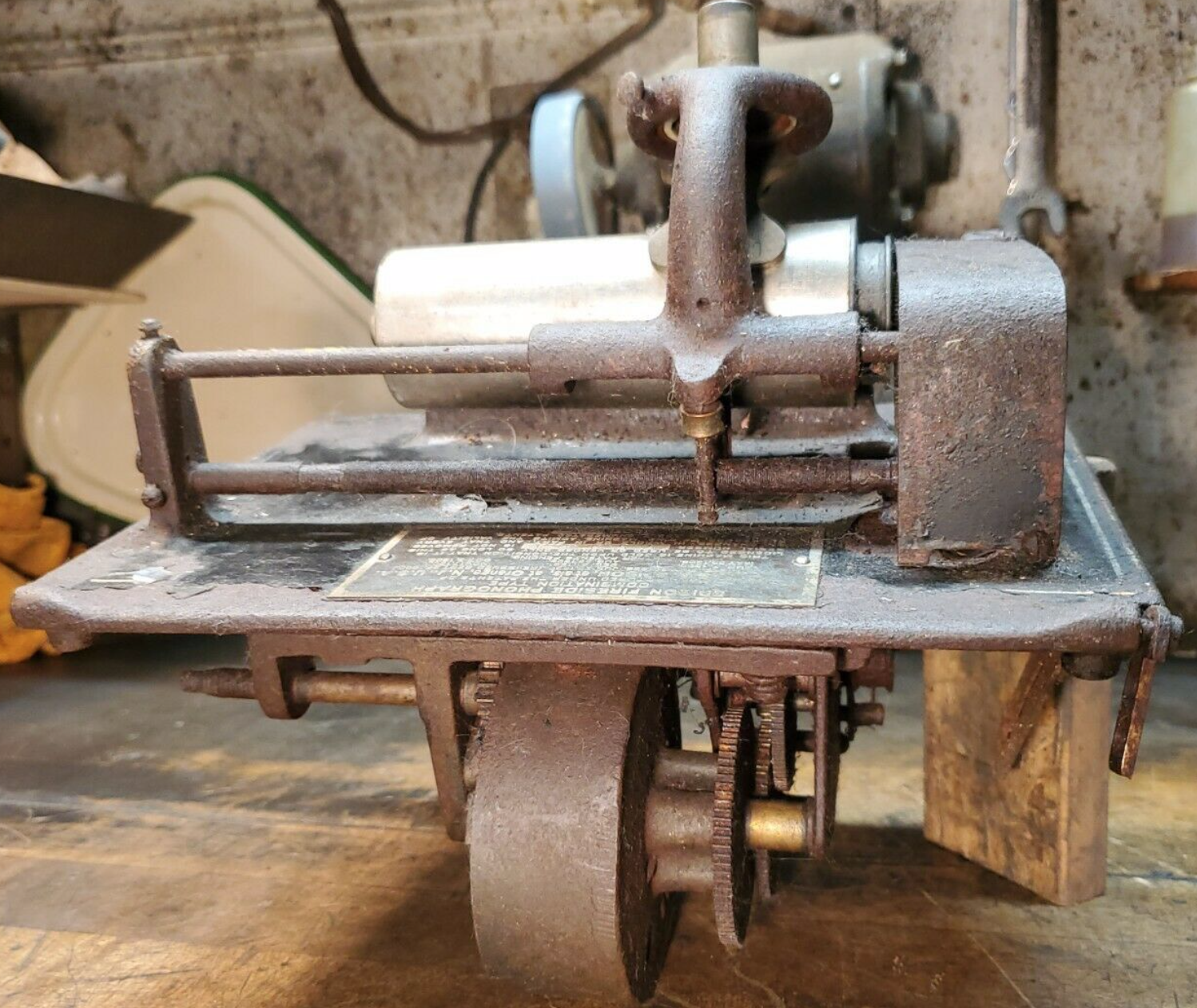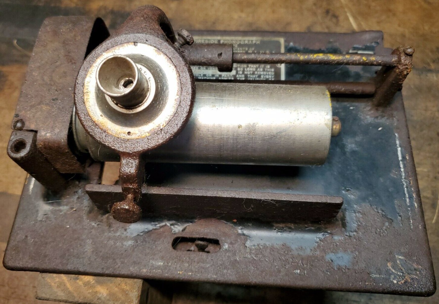 "Antique Edison Fireside Cylinder Phonograph w Combination K Reproducer great for restoration needs. This is rough and rusty. Everything is stuck on it. It has a combination K Reproducer that will need restoration. The knurled tighten screw is stuck and I can't take it out of the Reproducer. Good for Project restoration parts. Check out the photo's for condition"
