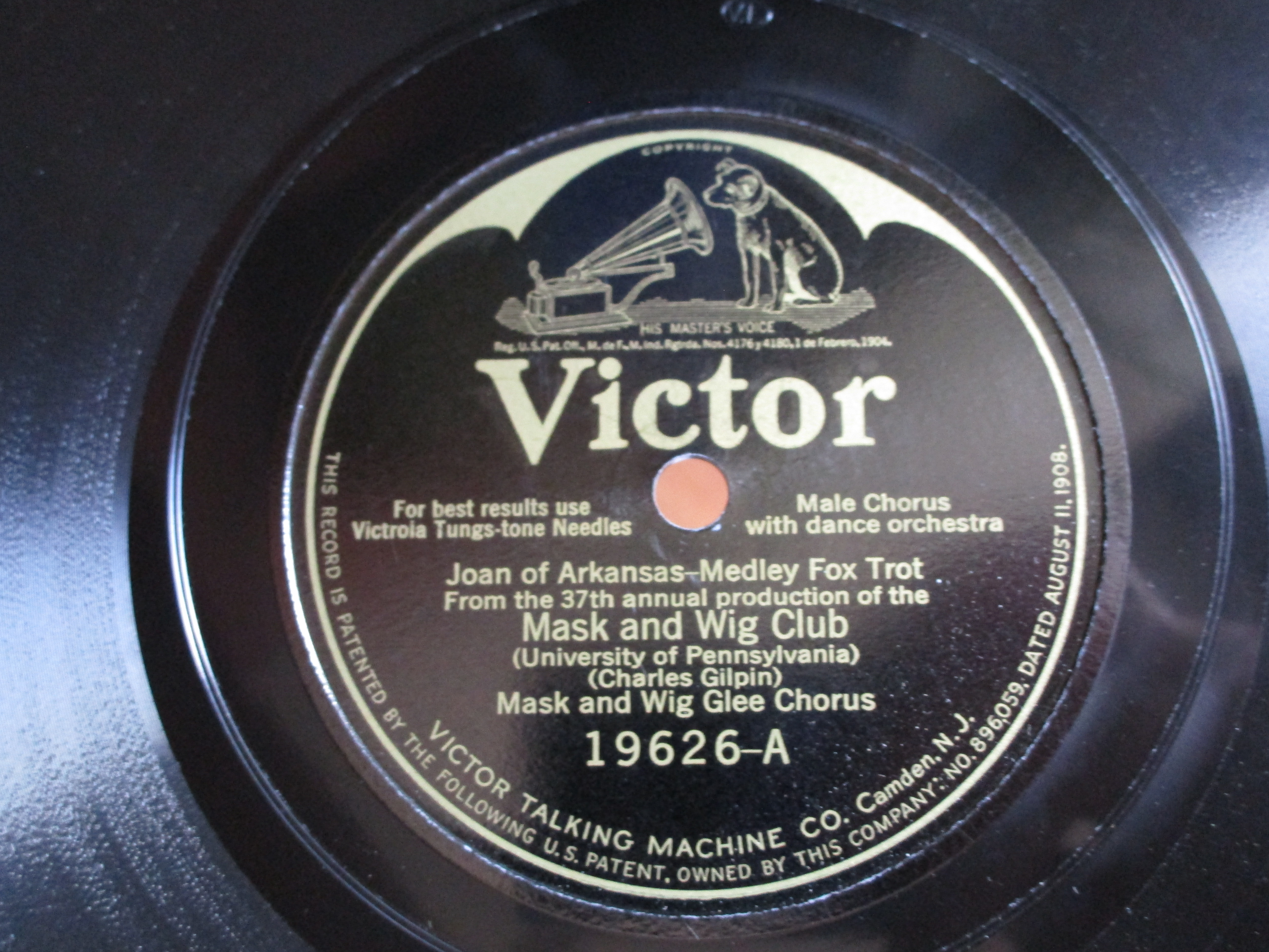 SOLD: E/E+ VERY FIRST Victor Electrically Recorded Record RELEASED (1925) #19626 University of PA Mask & Wig - $95