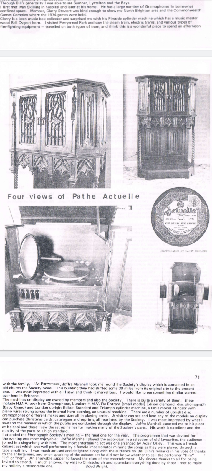 I have a client who has a Pathé Actuelle Model T Tudor English Gothic Phonograph. It is in excellent, original condition. I am trying to figure out fair market value for them. More than likely I will be bringing it to the APS show in Schaumburg. Looking forward to hearing everyone's opinions! Thanks.