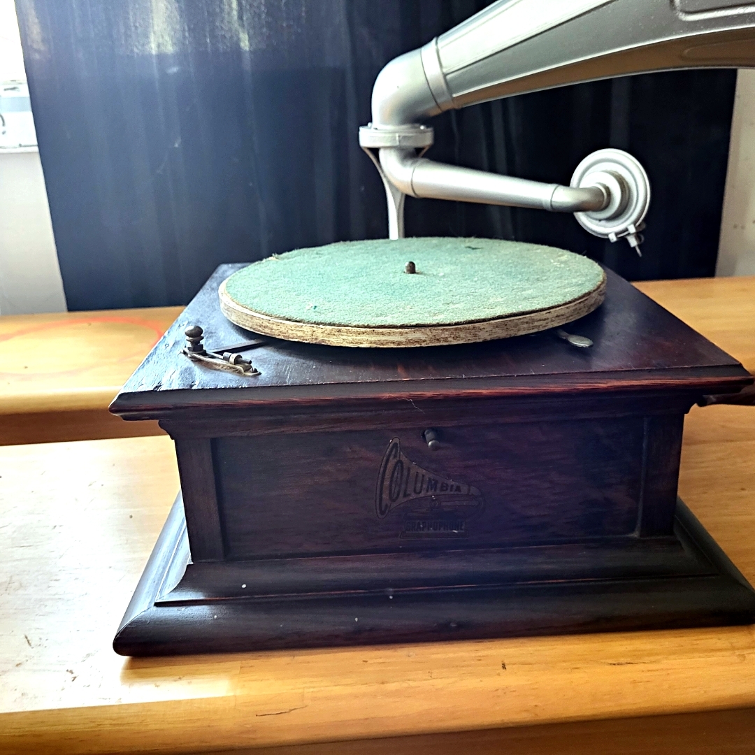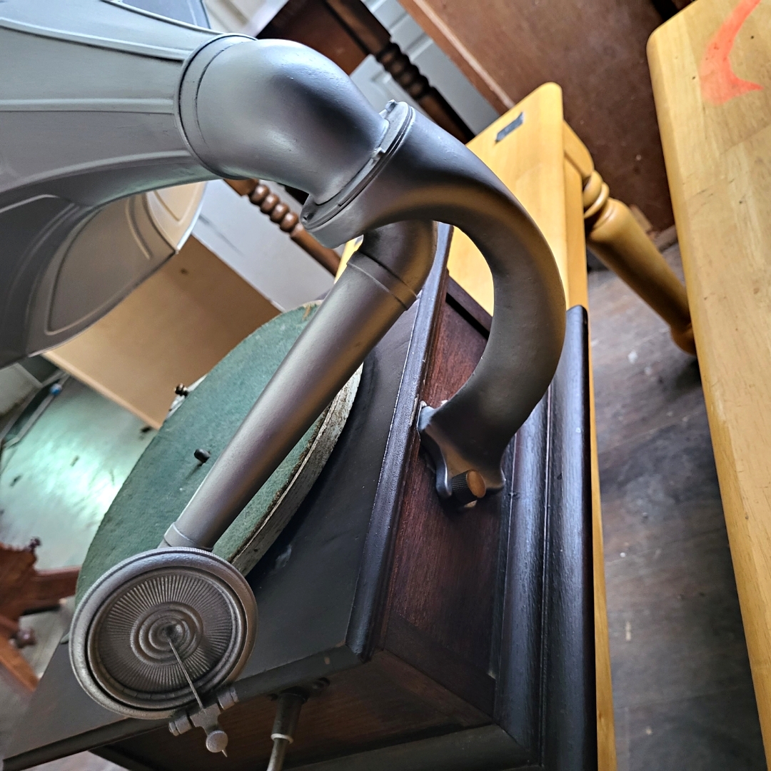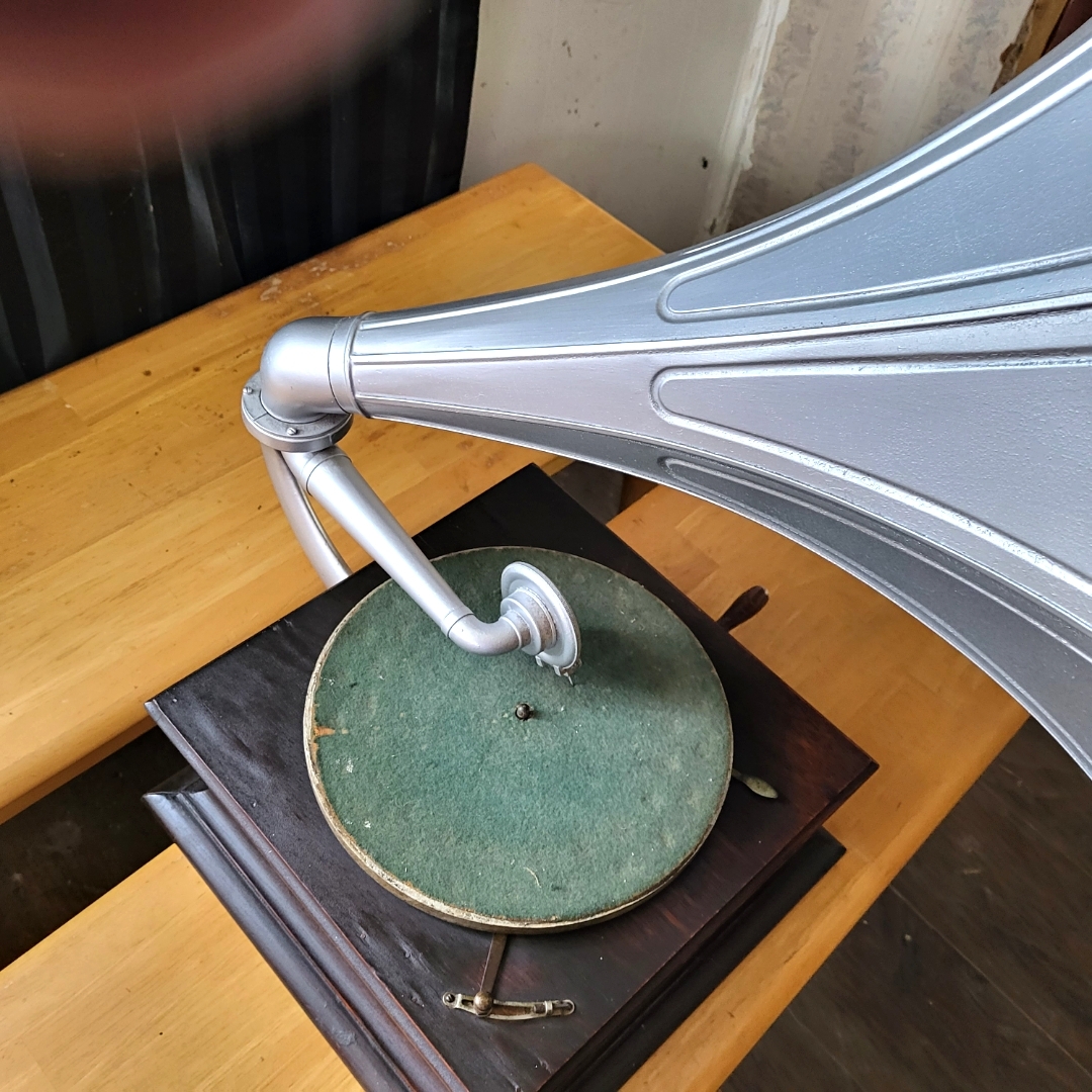 Hello and thanks for allowing me into the group! I recently purchased a Columbia Graphophone. It works, but could use some restoration. Someone has painted the horn silver.