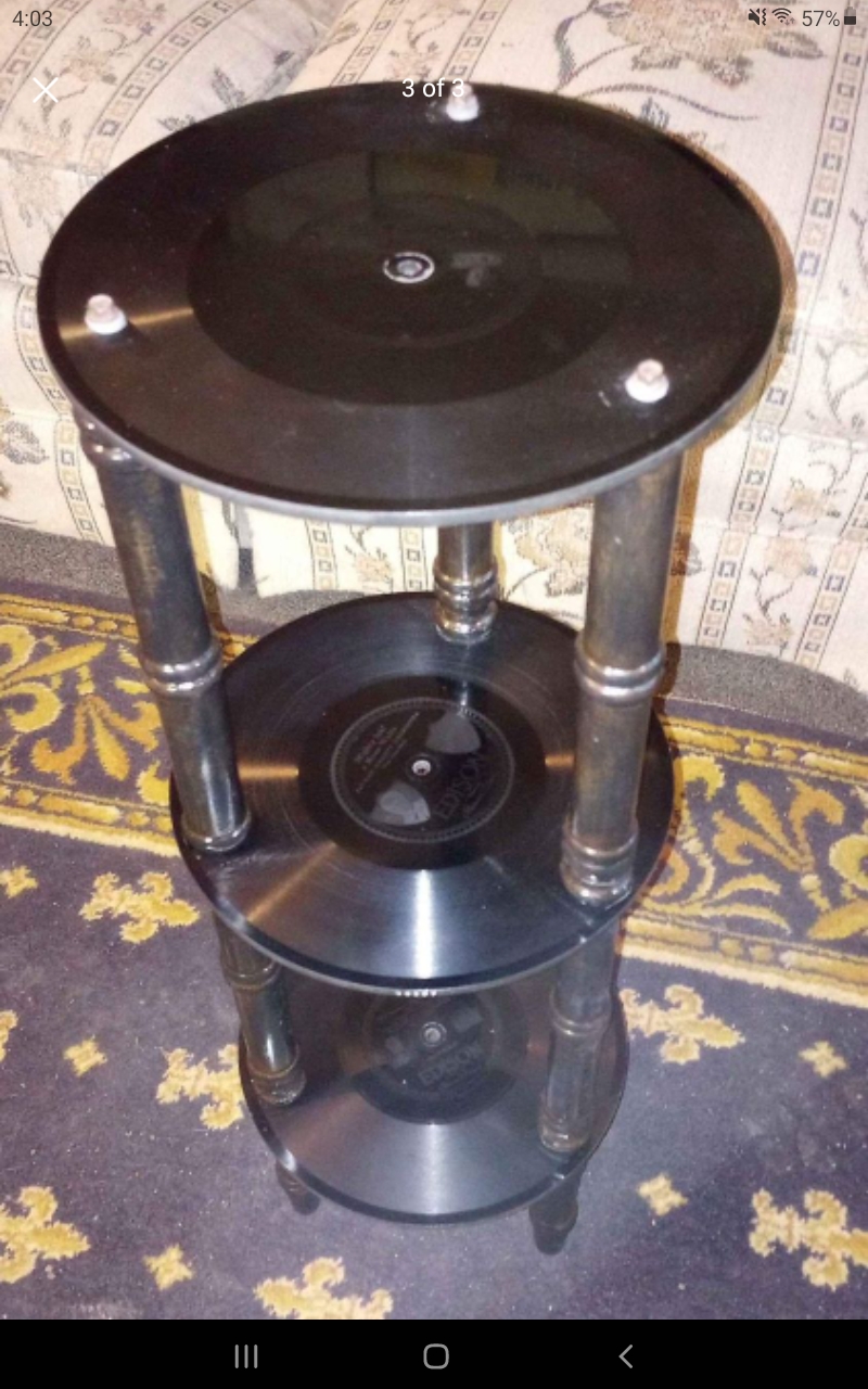 I suppose you could do one of these using records that were cracked on one side, or unplayable for some reason, but it really does look like a waste of decent discs--not to mention it's a ridiculously small table.