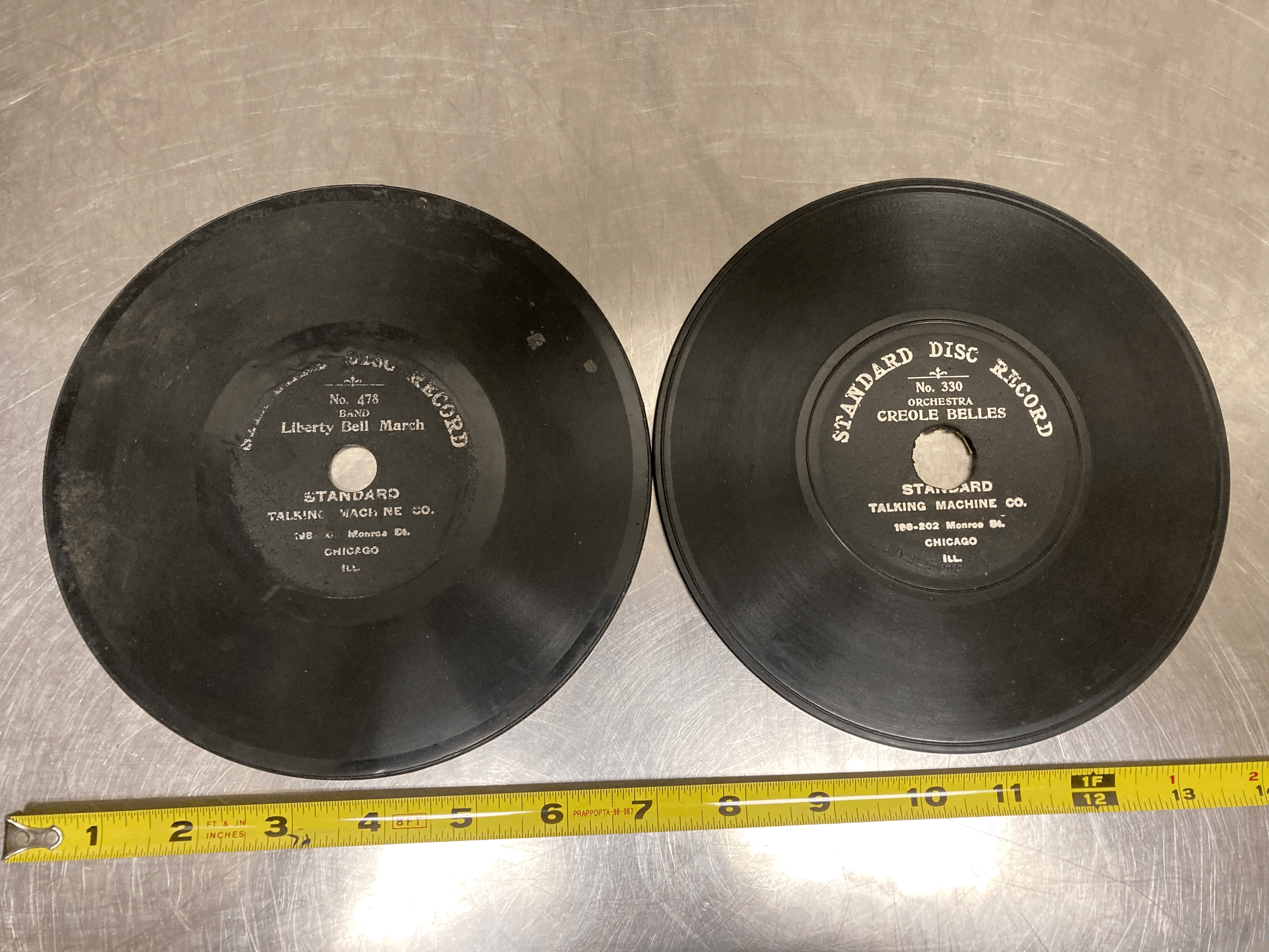 Two 7" Standard discs. One is in poor shape and the other is drilled out larger than a normal for a Standard. $10 for both or trade.