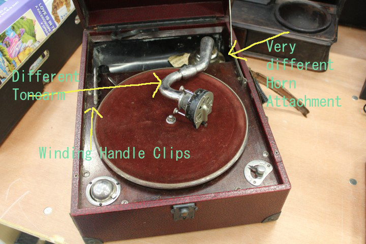 Aha ! I revise entirely my previous opinion. I have just found a red portable with exactly the same tone arm and horn fitting as I have, which confirms that this was indeed an original fitting and design.epigramophone wrote: Thu Jul 16, 2020 8:27 am As a collector of portables I could not resist this totally original unrestored Orchorsol.