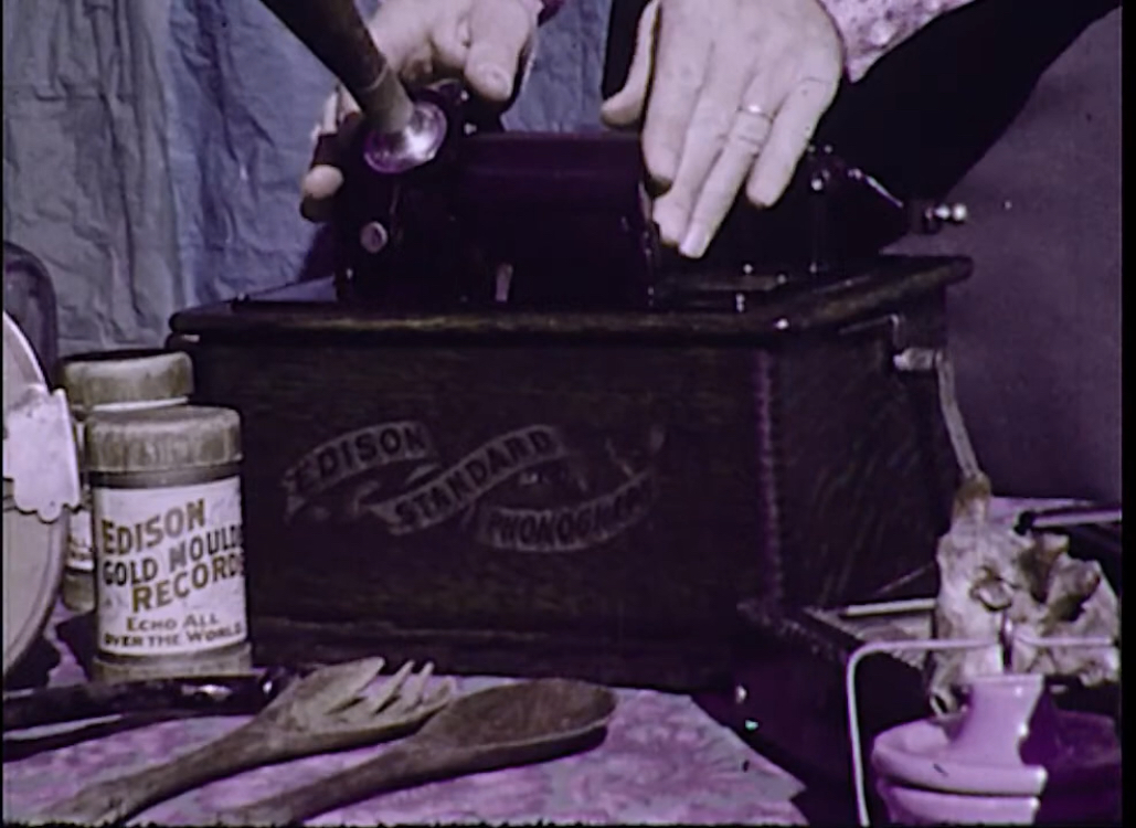 The last episode of the first season of WESTWORLD includes a scene where the character is winding an Edison Standard cylinder phonograph backwards. Then he does it again.