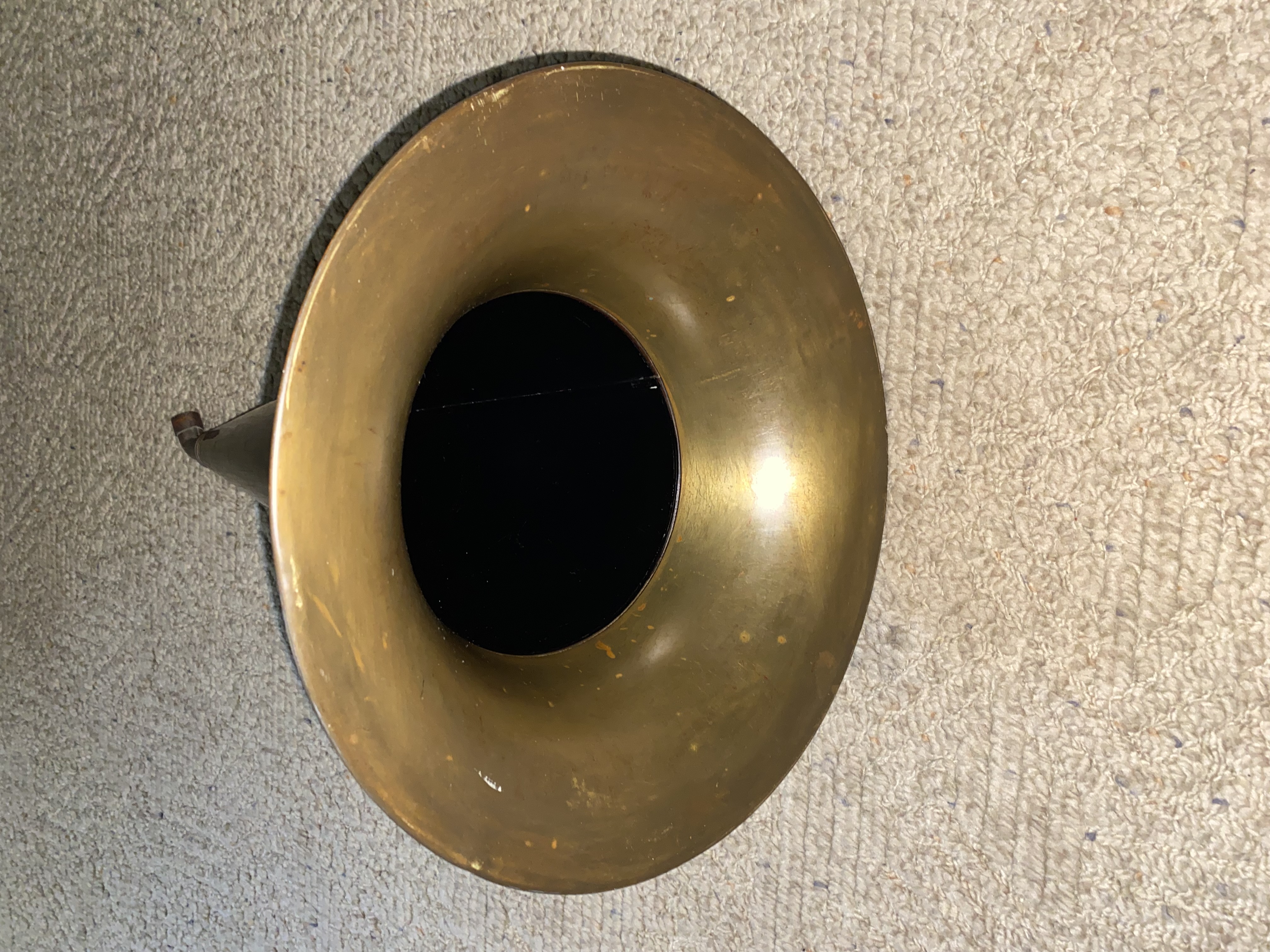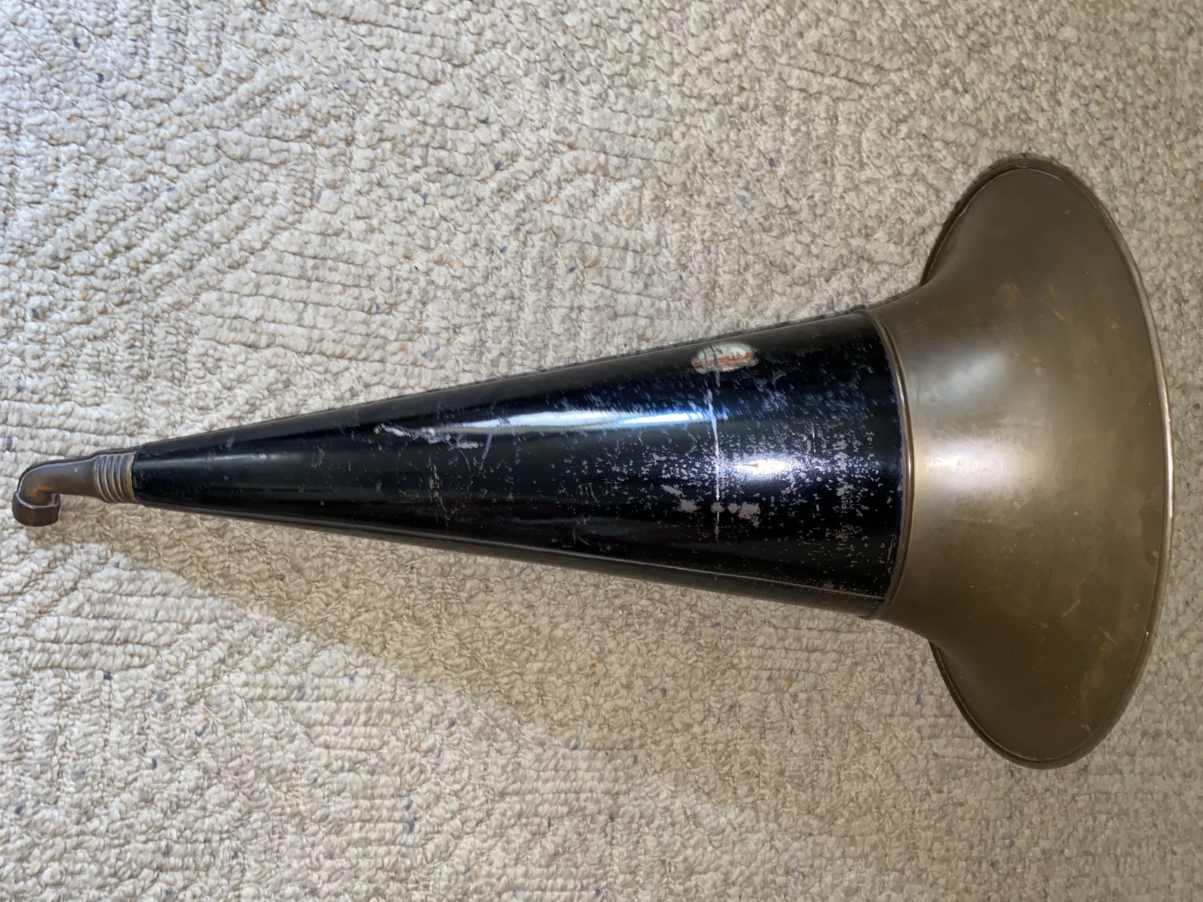 Hi, here is a really hard to find horn AND elbow for Victor Rigid arm machines. This horn inparticular was the OEM size for the rigid arm MS. I have a picture of it mounted on my rigid arm MS (not part of the sale) to show the elbow is at the proper angle. 13 ¾" diameter bell, early blue background nipper decal, with original correct and straight rigid arm elbow. Paint is fair and I have cleaned the paint surface. I have not buffed the bell or elbow, but the horn is dent free. $600 plus shipping. Please call, text, email or PM to purchase John Duffy 860-966-2827