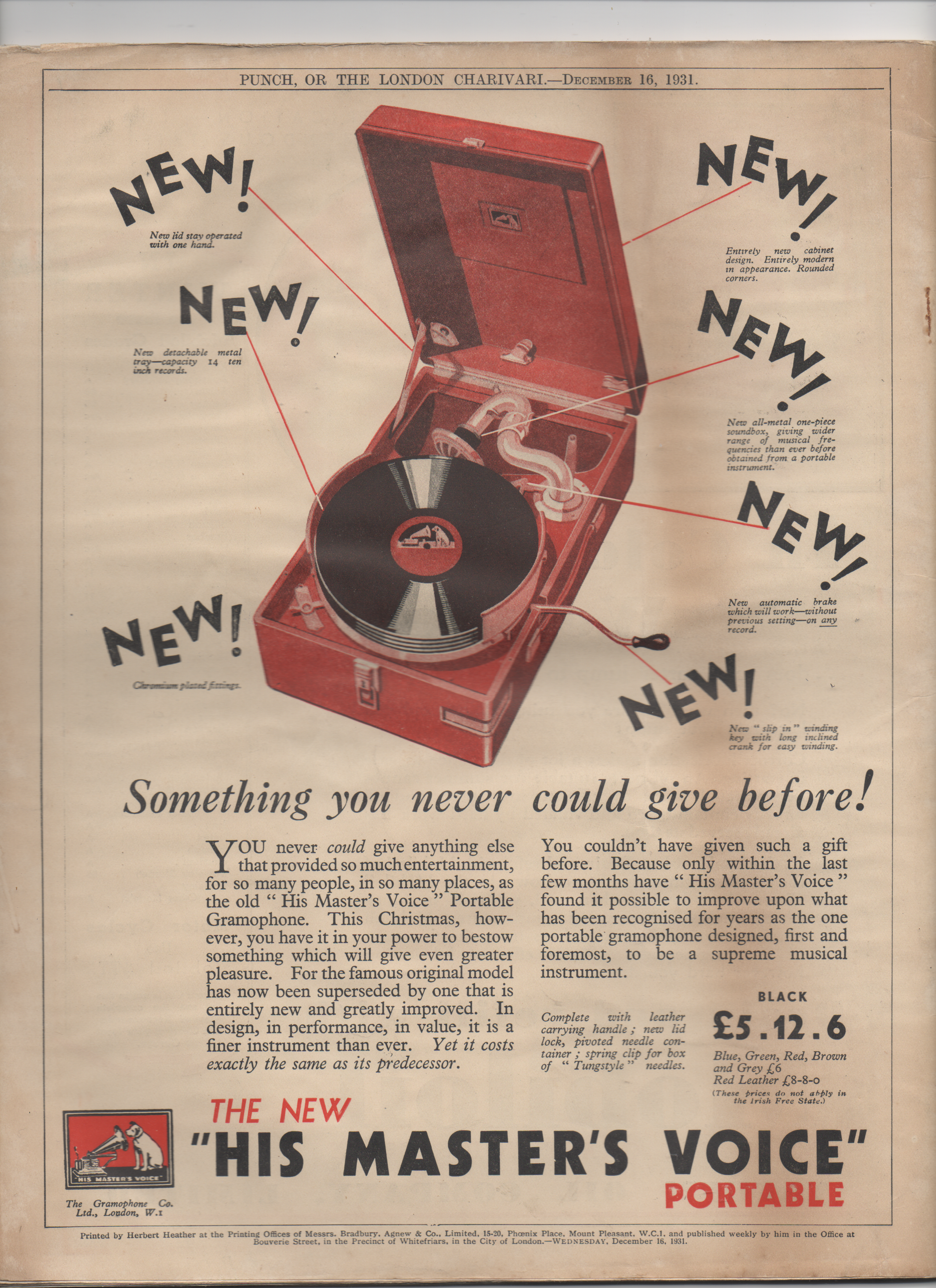 Re: 102 PORTABLE GRAMOPHONE advertisement 1931.