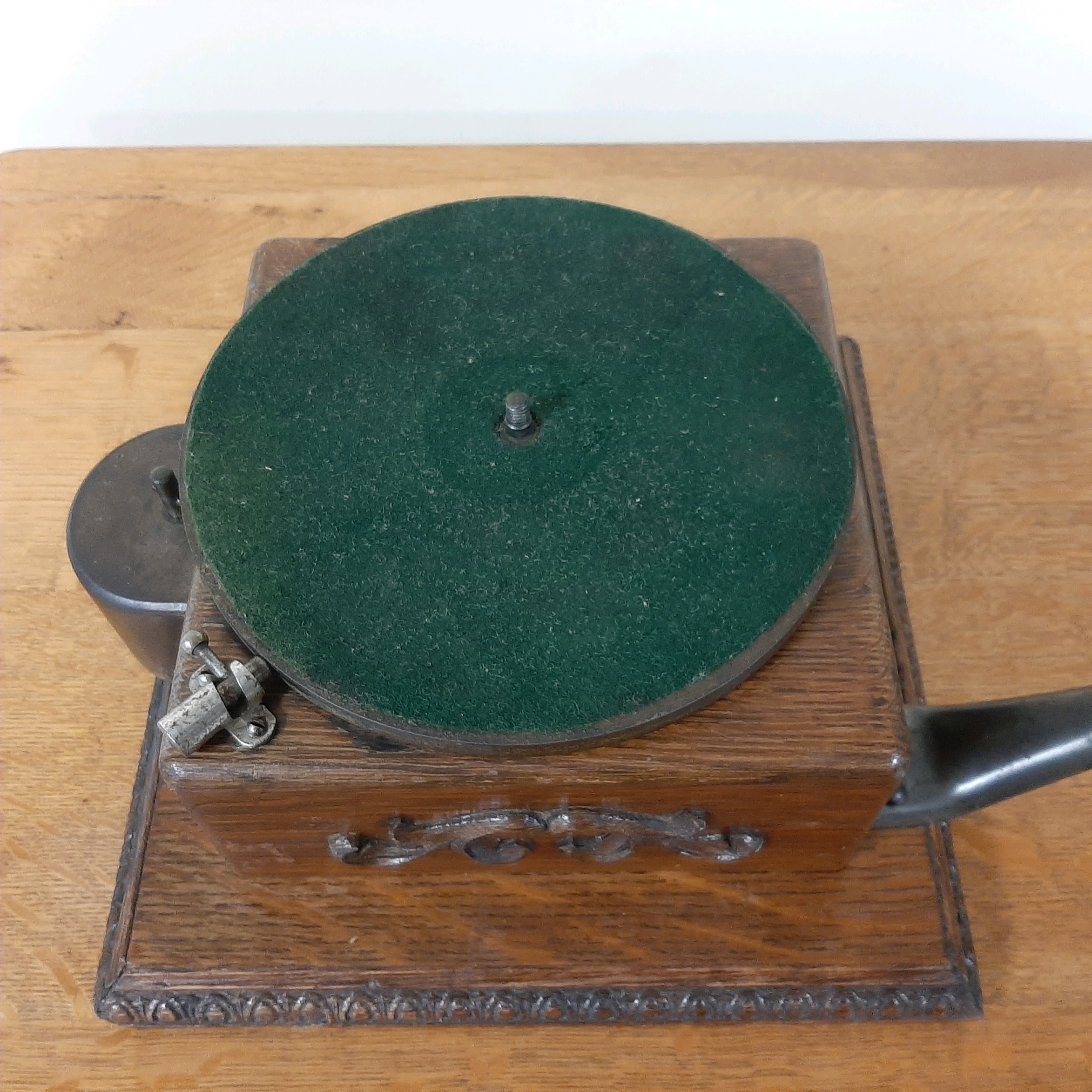 I have a nice early Vic B for sale. It has the fighting dolphins vs the fleur de lis applique. I think this maybe the rarer of the two models because I have only seen a few of these compared to the fleur de lis. It is all original as far as I can tell with the following exceptions: the felt may be an older replacement, but I think it's original because it has shrunk and it's a darker color under the record hold down. The EJ reproducer has a new rubber on the front but it HAS NOT been rebuilt. The serial number on the reproducer is 86. The original elbow was re-glued but it is not visible from the outside. The original PAF horn has been rolled by the master John Duffy, but it has the original paint and patina intact. It plays great considering the age and has no problem playing through a early 7" disk. If you have any questions or want additional pictures let me know. Thanks, Bob