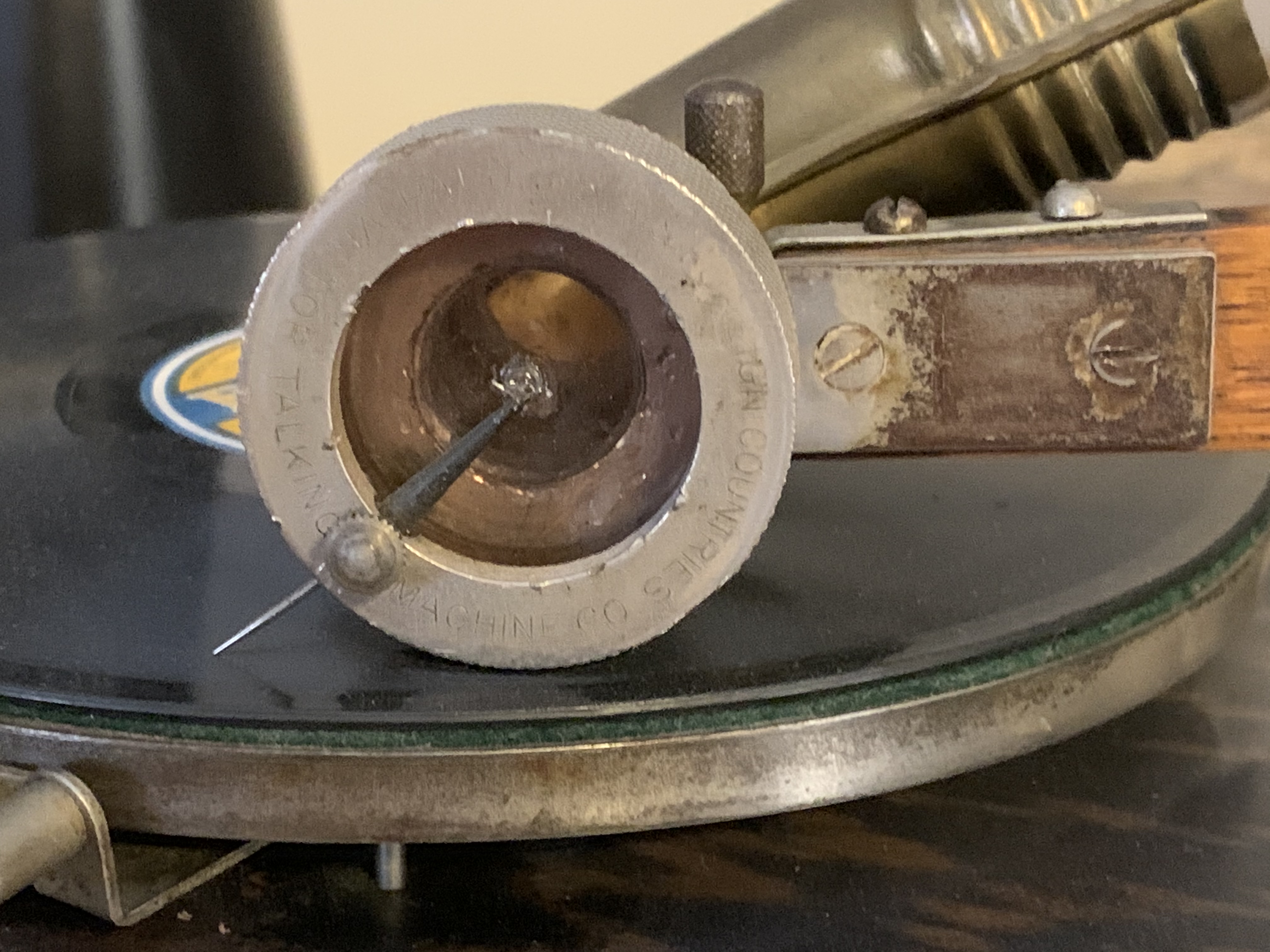 I have a problem with my Vic R reproducer that I need help with. The reproducer hits the record before the needle does. I found a needle that is much longer than most but even that doesn’t work. If this was an Exhibition reproducer I would just simply rotate it a bit but this reproducer has a locking alignment pin on the back. What is the solution?