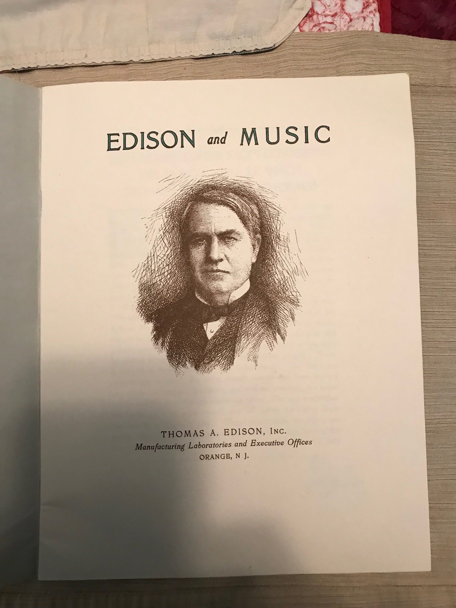 SOLD: Original "Edison and Music" publication--$15.00