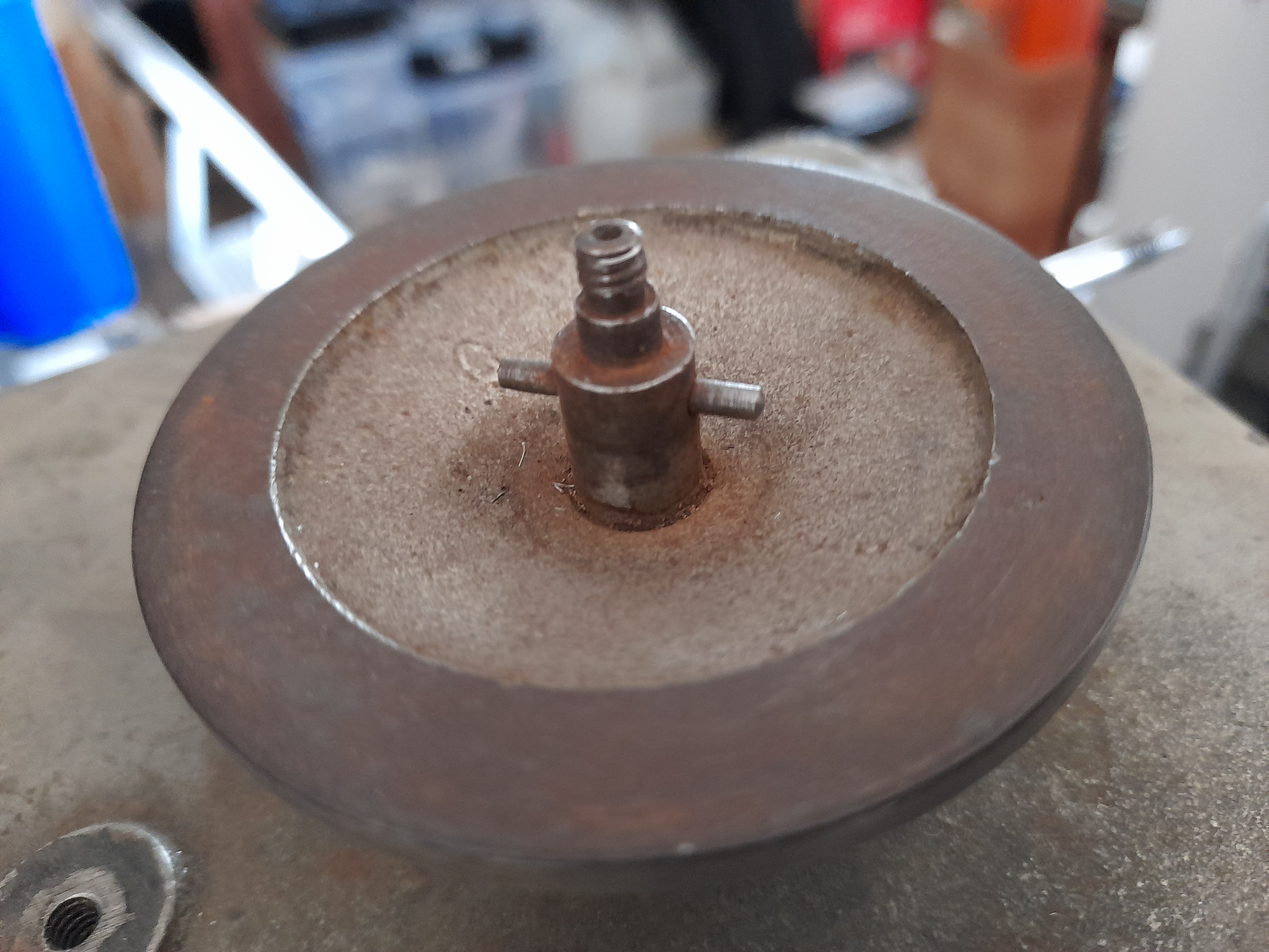 Could anyone tell me or better again show me what kind of threaded piece is missing from the top of the spindle to keep the turntable in place.