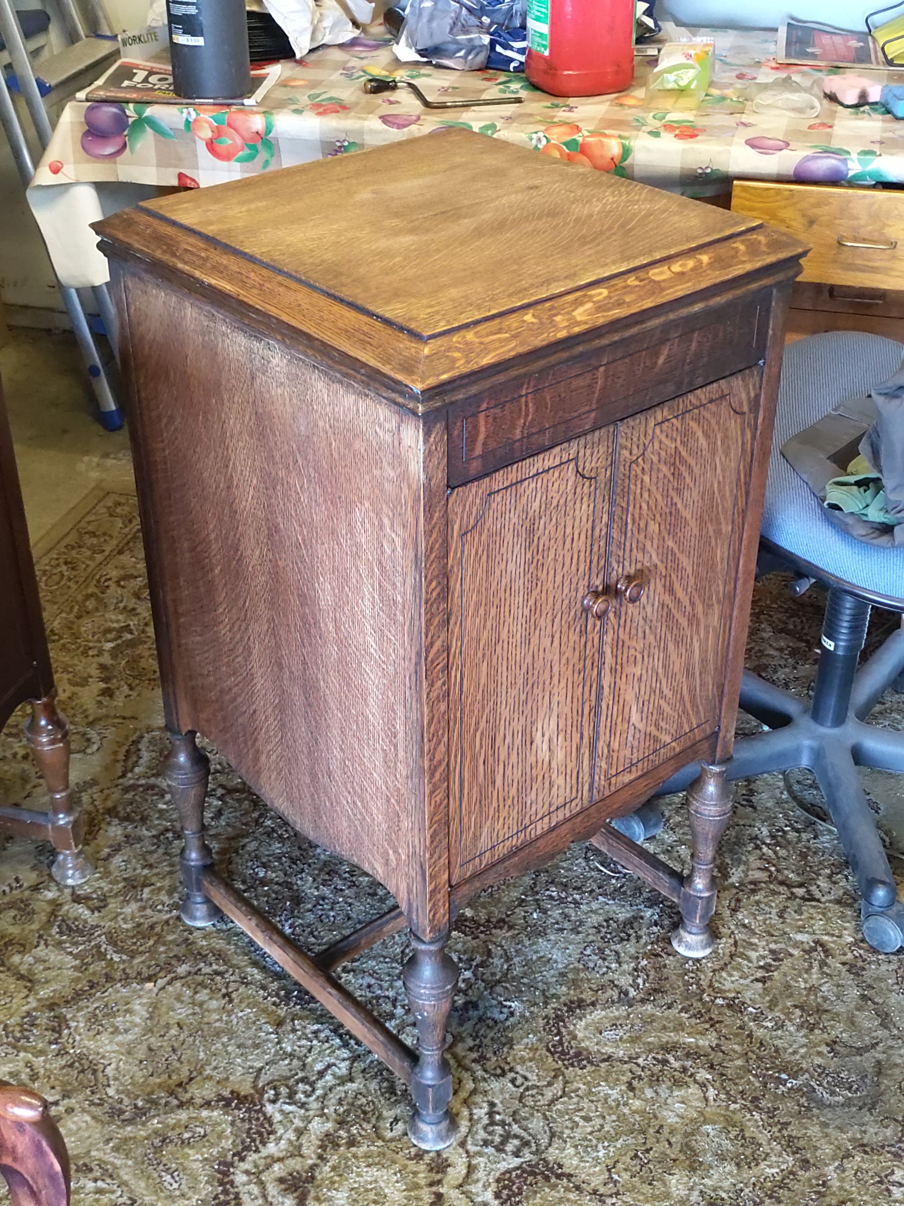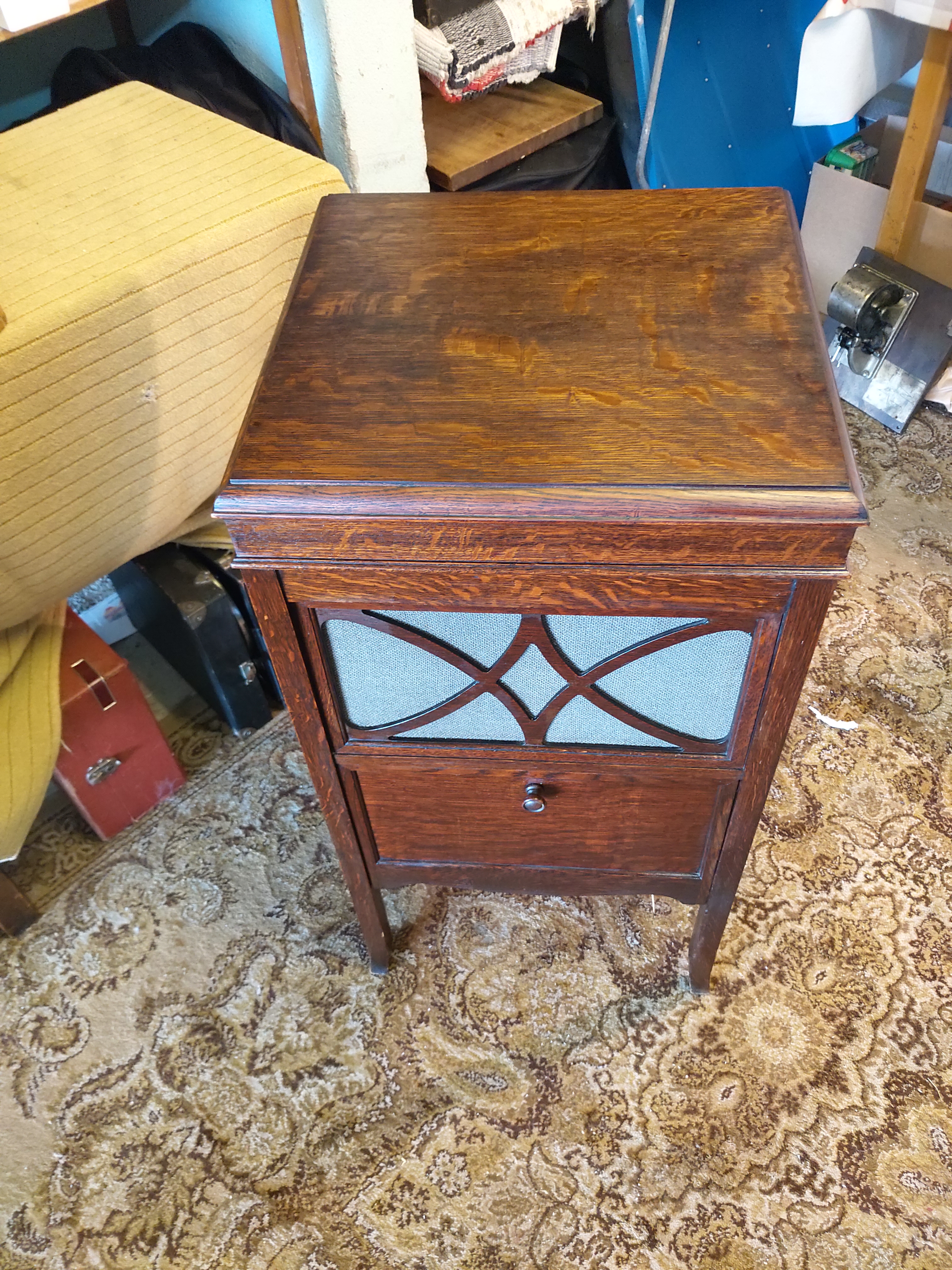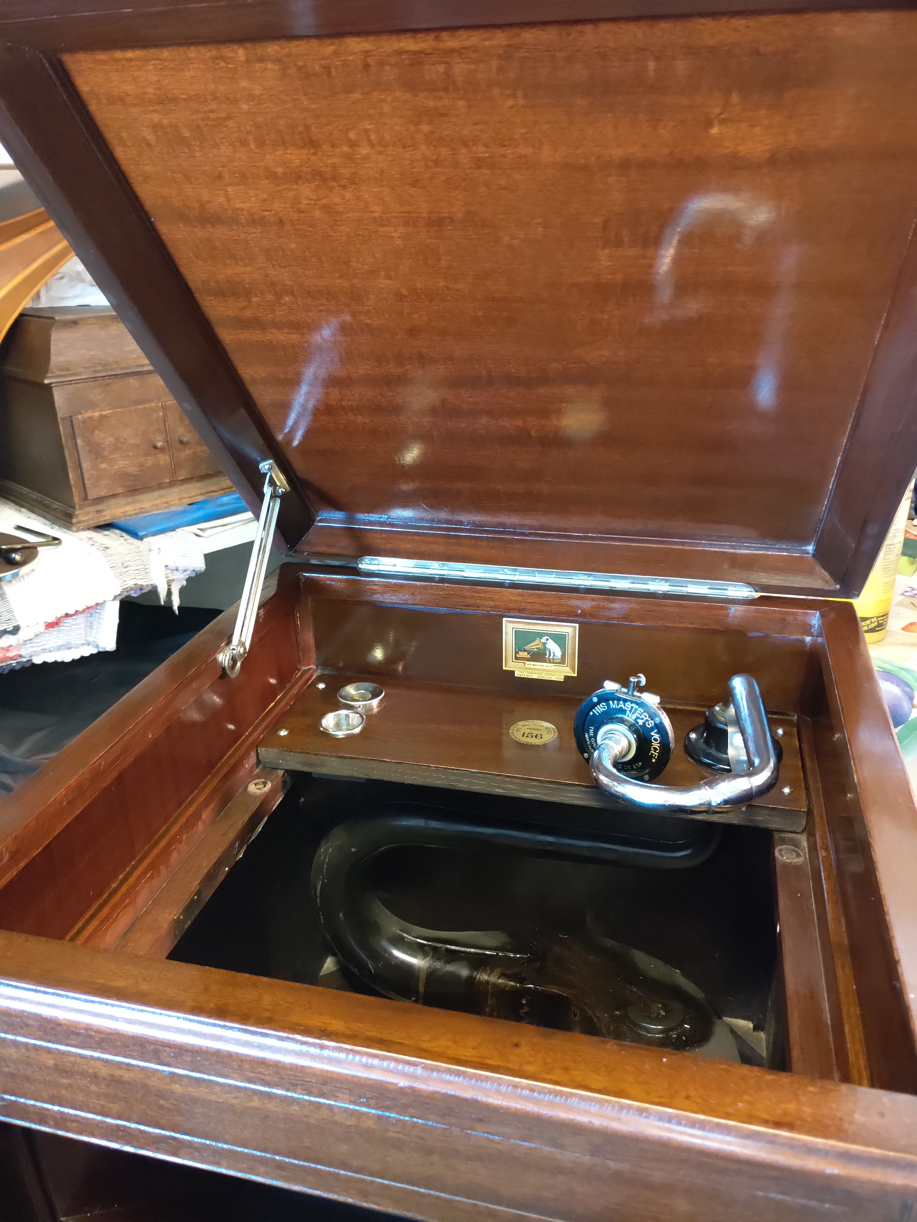 Thanks for telling your story Jamie, I always love to hear such stories, and it always also give an extra boost to post photos of different machines that turn up. Yes, it is nice to see the difference between the two 156 machines, and I will upload some photos also of the horn later on, for reference. Right now the mahogany machine has received some treatment on the cabinet, while the oak version is straight out of the sellers ( dry) basement.