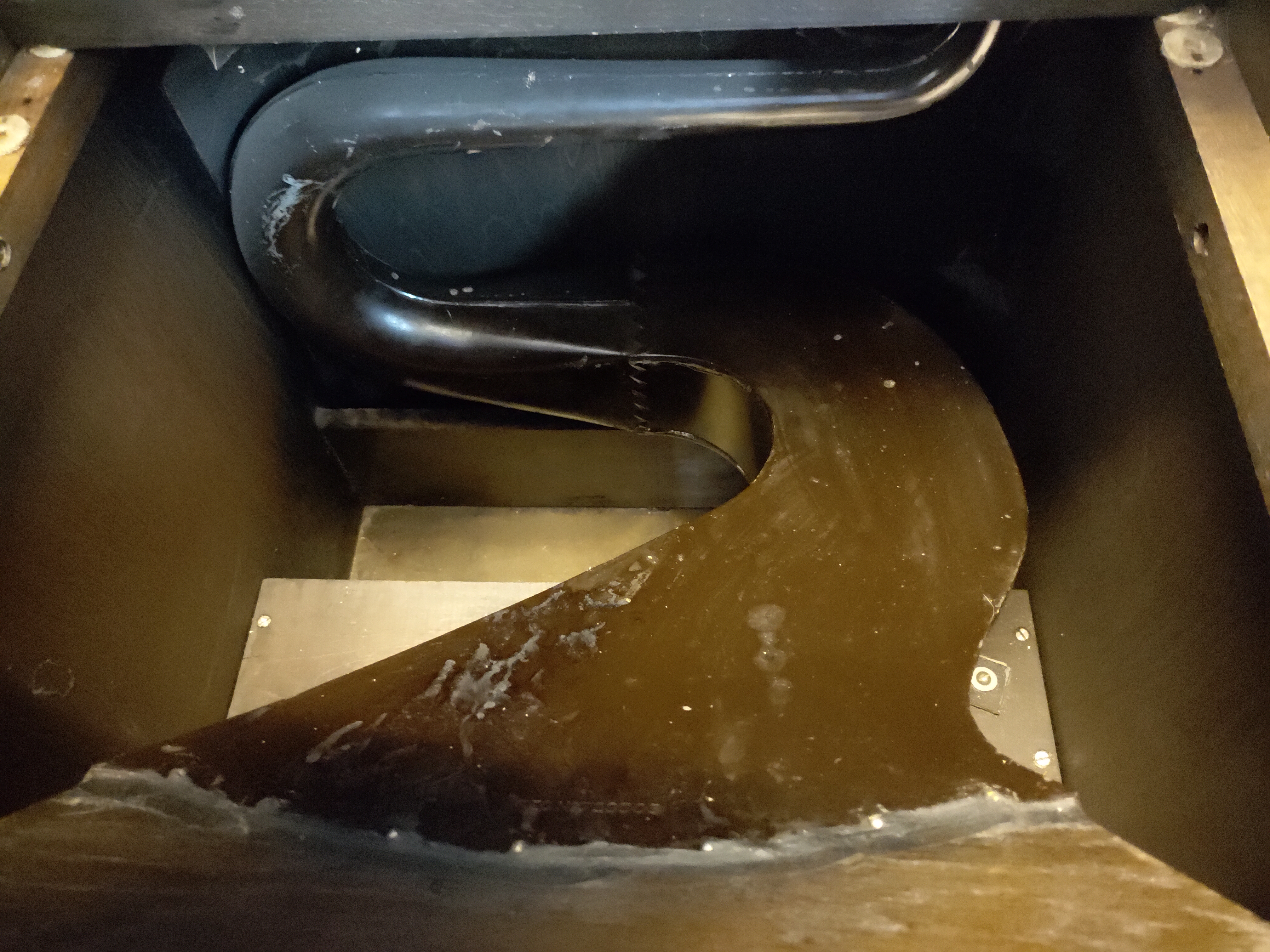 We can see the upper front panel under the lid, has a darker color, that corresponds with the color inside the machine