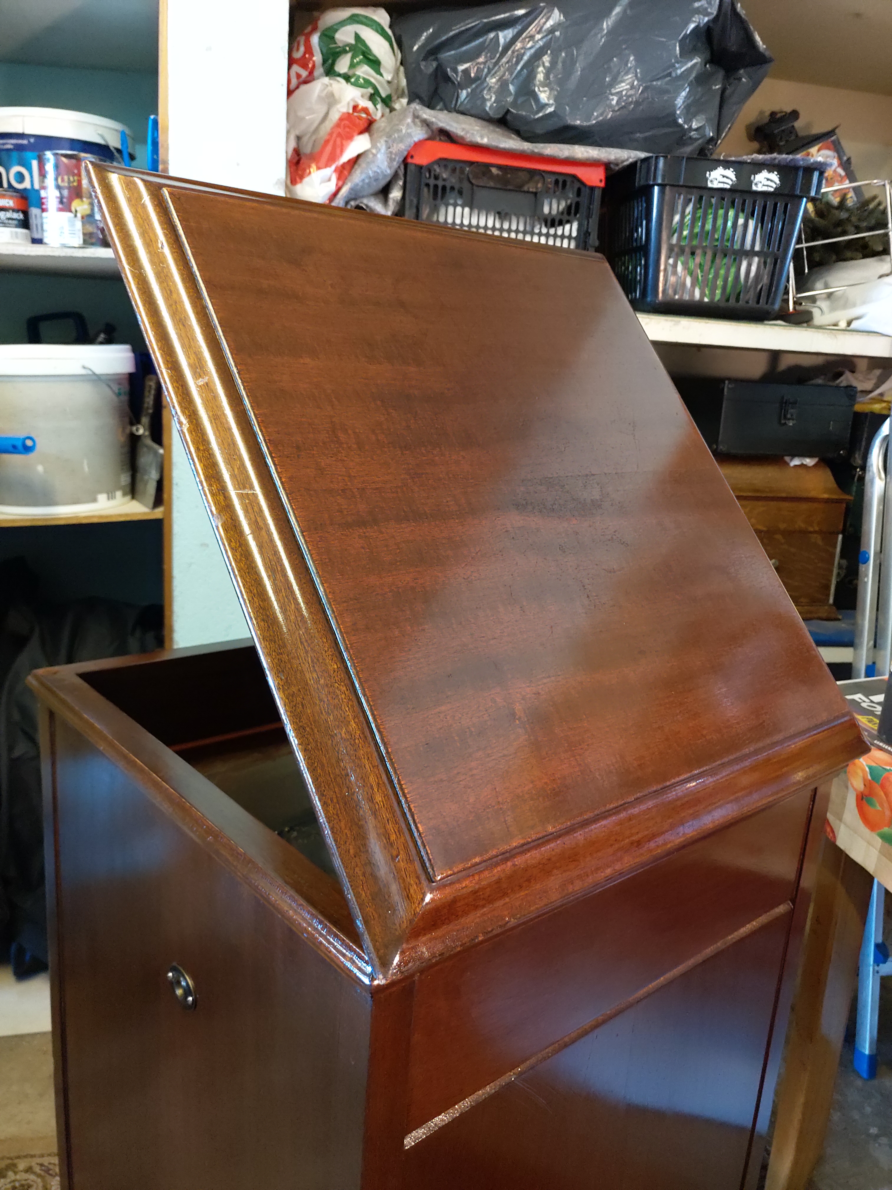 2. The mahogany machine is getting beautiful, only gentle cleaning with Swarfega and adding Howards Restore -A-Finish and ending with Polish, made this result.