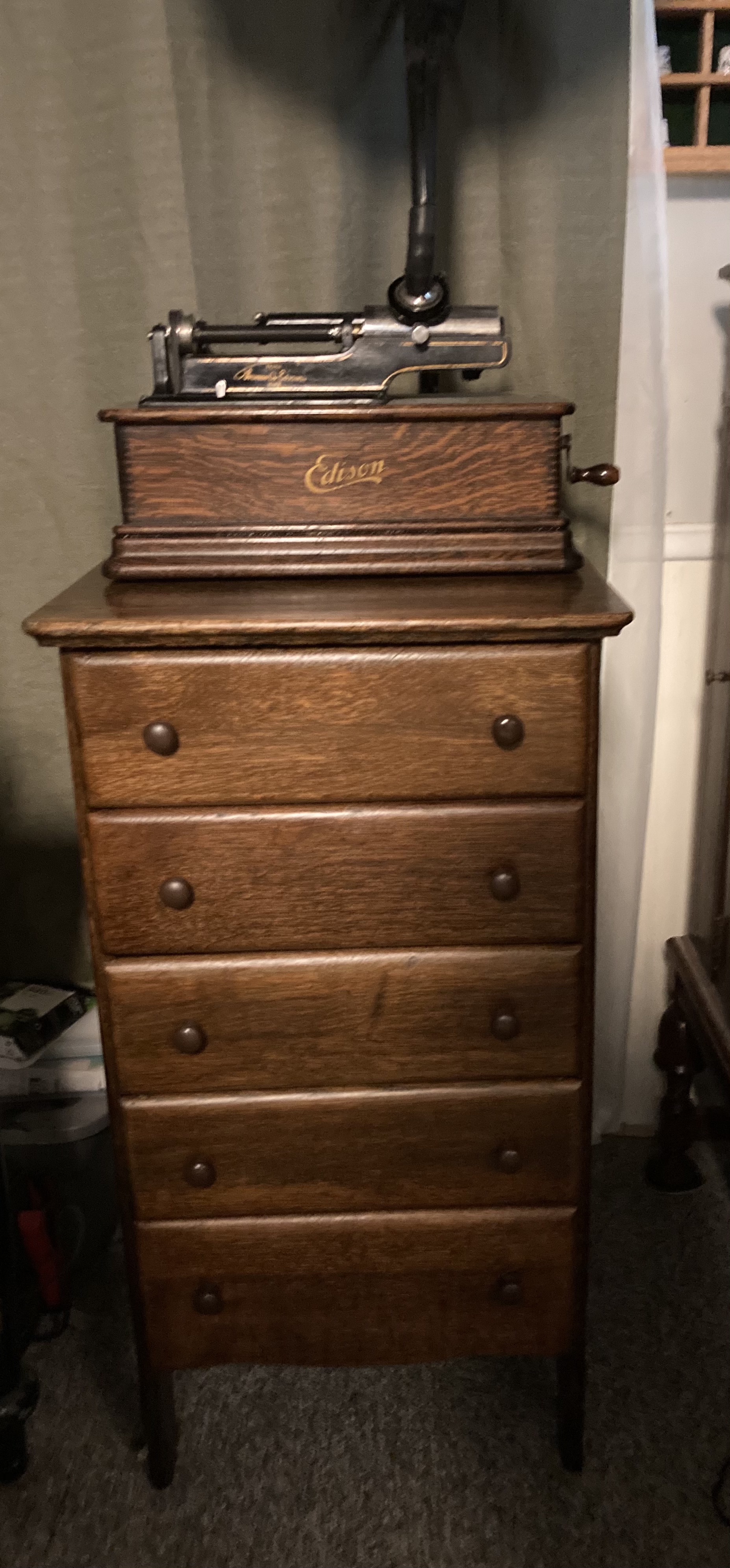 UPDATE 6/11/21; With the help of our friend Jerry B. I was able to FINALLY purchase a cylinder cabinet from Craigslist! Now this one is the type where the drawers pull out and tips diagonally for easy record access. I’m not sure who made it but I am very happy to FINALLY have a proper place for my cylinders!!