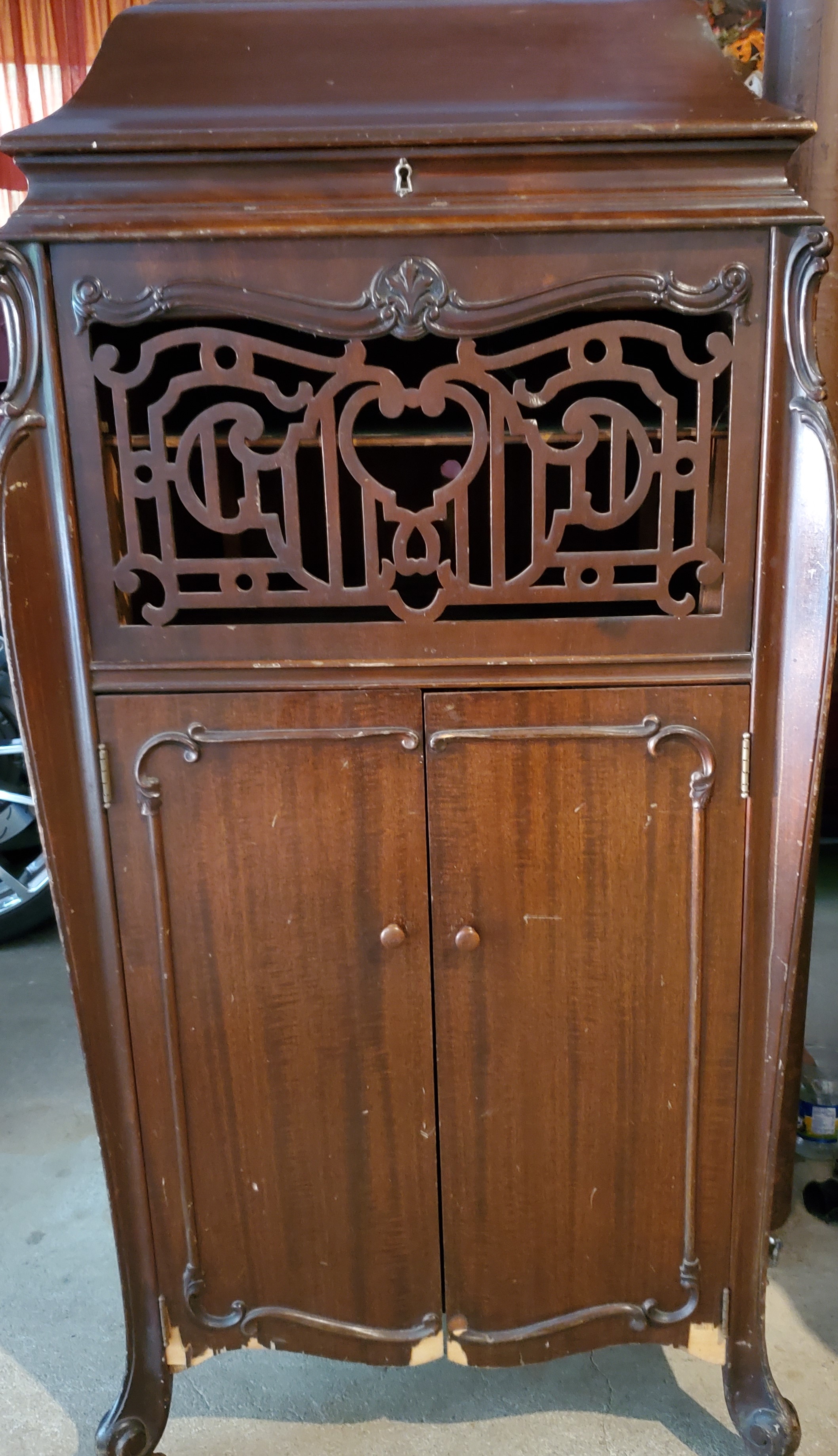 Just picked up this phonograph cabinet to save it from being scrapped. Can anybody provide any info on it? Is it worth holding onto hoping to find the "guts", since it is lacking the turntable?