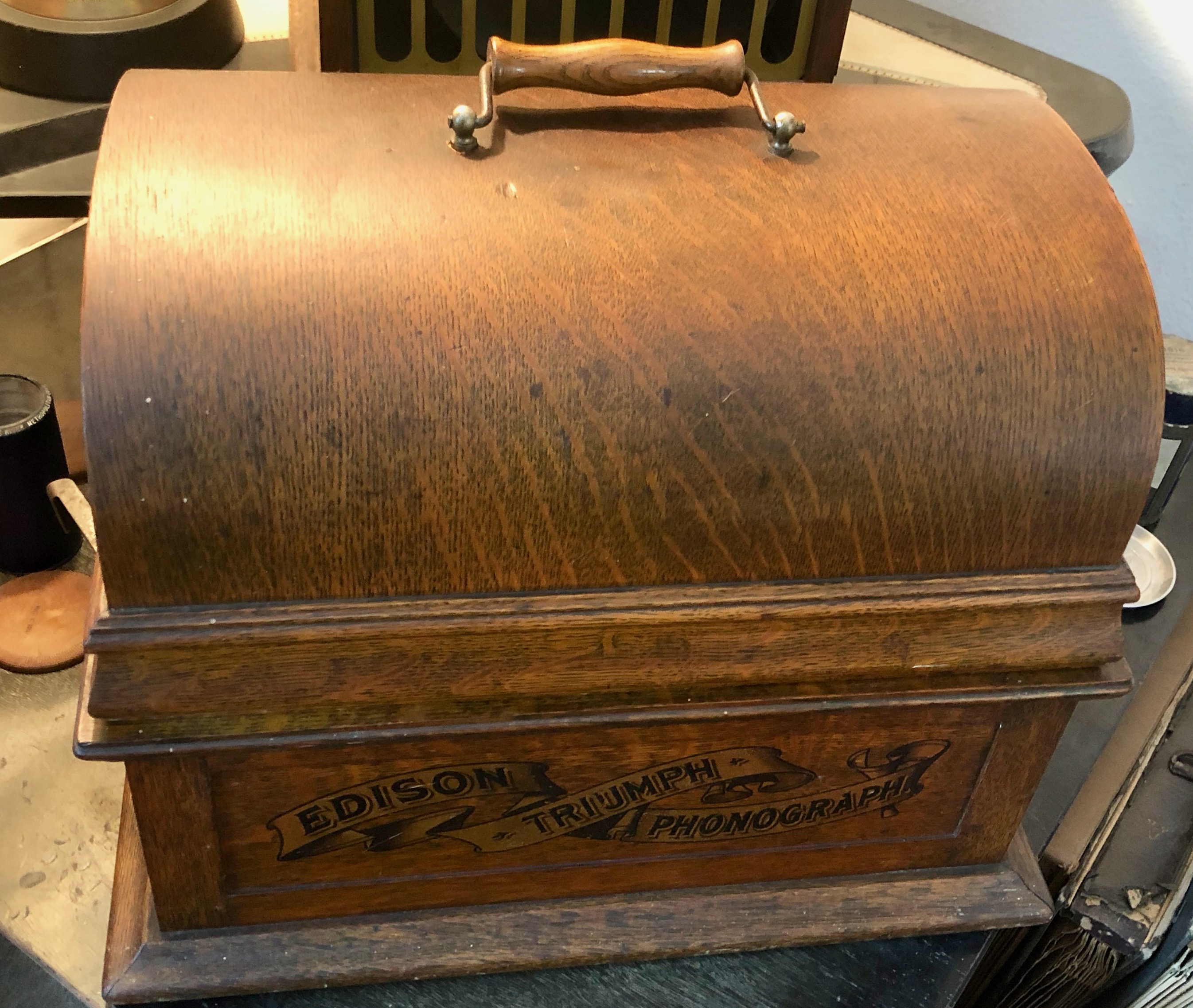 I've acquired what is hopefully the last machine on my "bucket list," an Edison Triumph Model A. This is an interesting one. Someone upgraded the machine to 2/4 gearing at some point in the past, and put a horizontal carriage with a Diamond B reproducer on it. The original instructions for the combination attachment were still inside the machine. The cabinet is a very nice original with a near perfect decal. The reproducer is just back from Wyatt and it sounds great. I am hoping that with the proper reproducer reducer ring, I'll be able to play just about any cylinder on this machine and weed out the collection a bit.