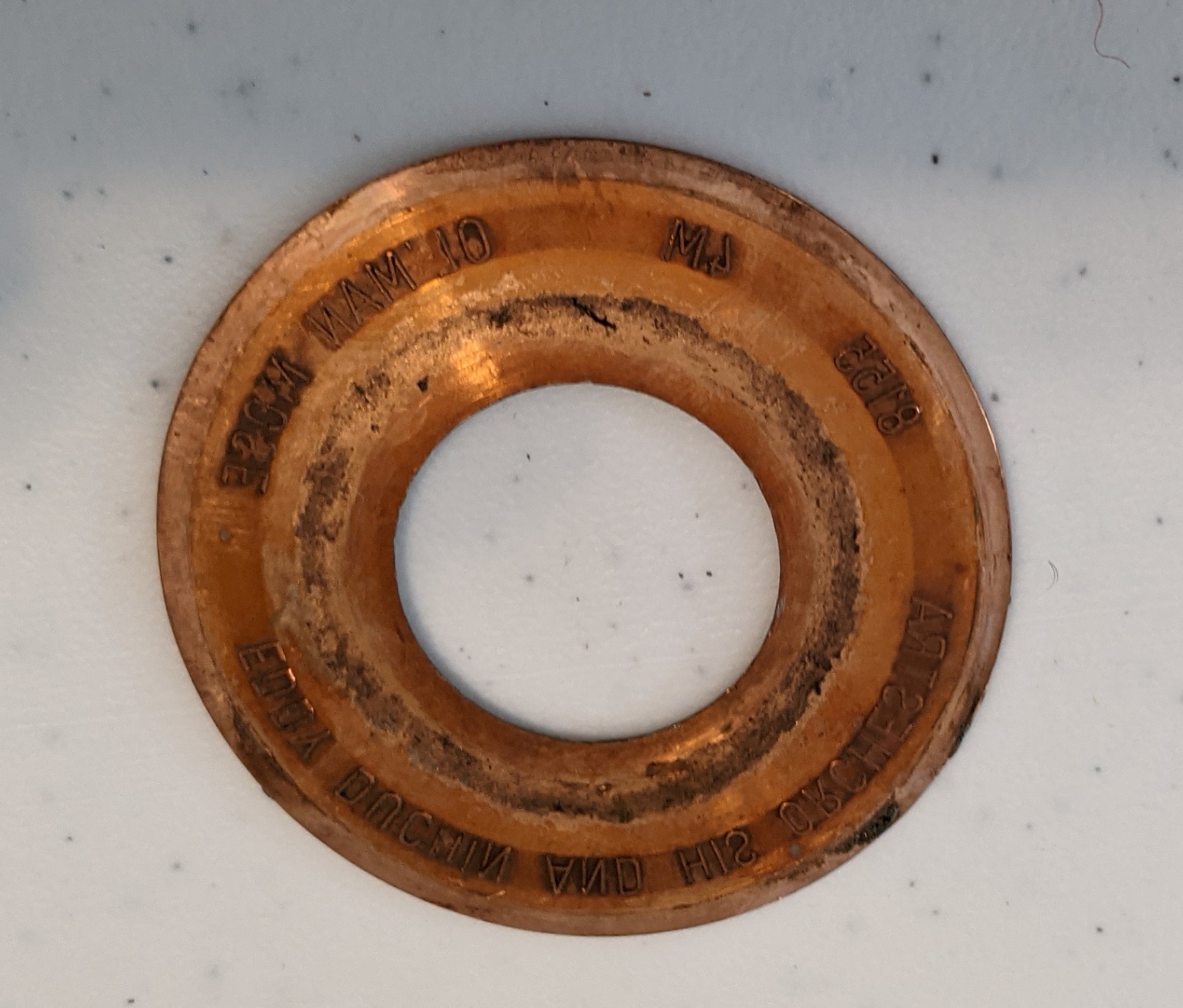 This mold is in great condition, ready to produce another record. It has the face plate that will create the end of the cylinder with the title. I believe it is made of copper.