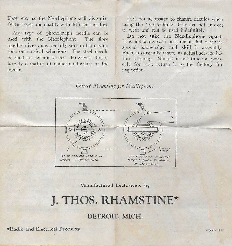 emgcr wrote: Fri Jun 18, 2021 2:17 pm The one I have come across is called "Needlephone" by Rhamstine which I found on eBay (USA) quite recently. Unfortunately, although it looks as though it has never been used, it is not in working condition and I have not yet had to time to determine the fault but the coil might need rewinding. A friend has one which works well.
