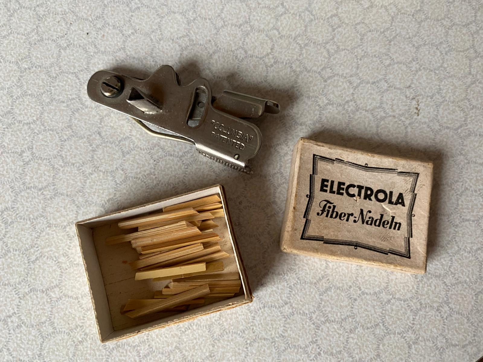 By far more rar is this box of Electrola fiber needles. Fiber needles were very unpopular and unknown in Germany. I never saw a advert or a cutter for these. There were thorn and some other wooden needles but also much less than in GB or USA