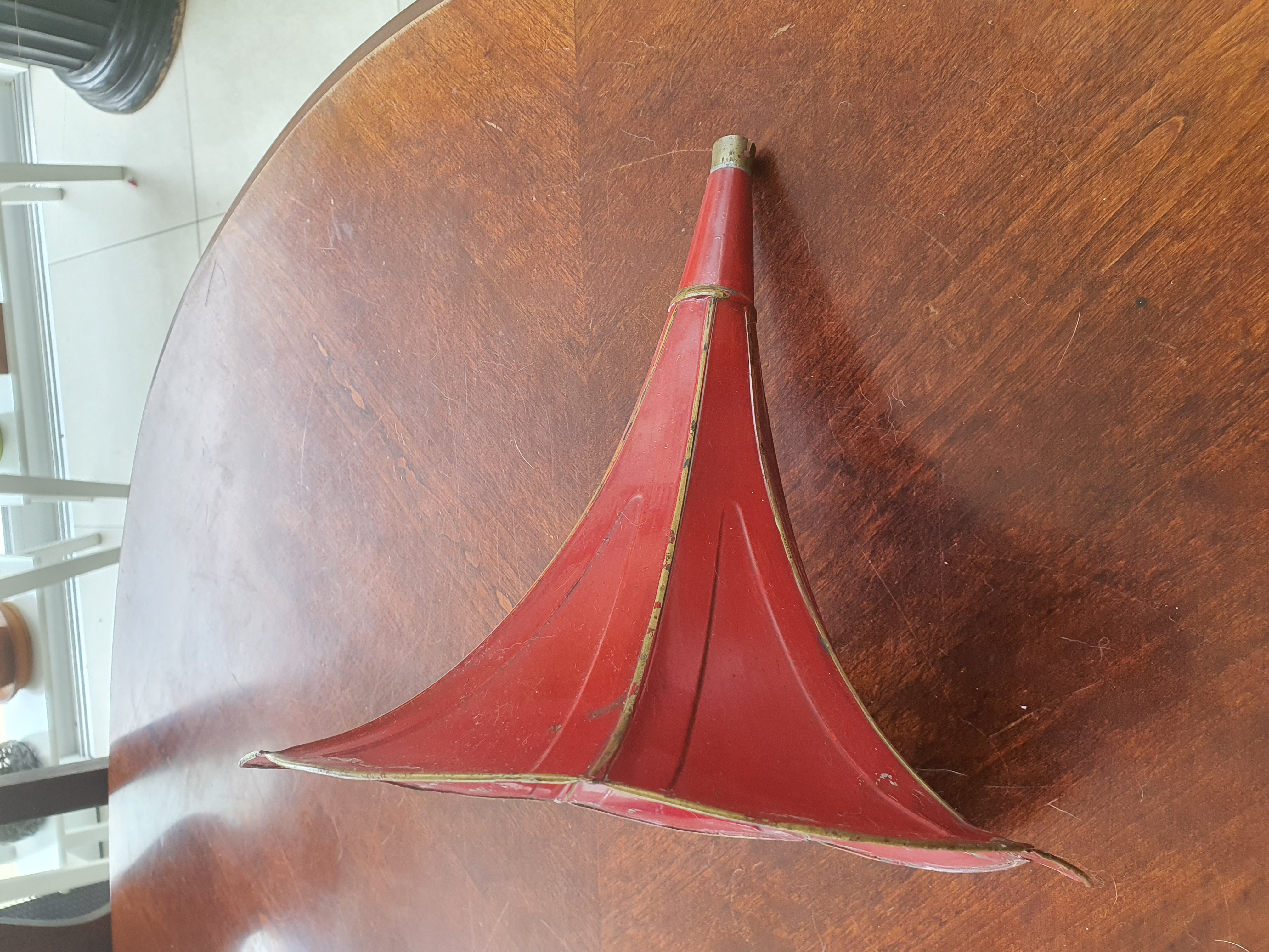CarlosV wrote: Wed Jun 30, 2021 10:11 am Mine is an original horn, not aluminum, but painted tin. Aluminum horns are more utilized in the French Pathé machines, most German machines had tin horns. Hope it helps.