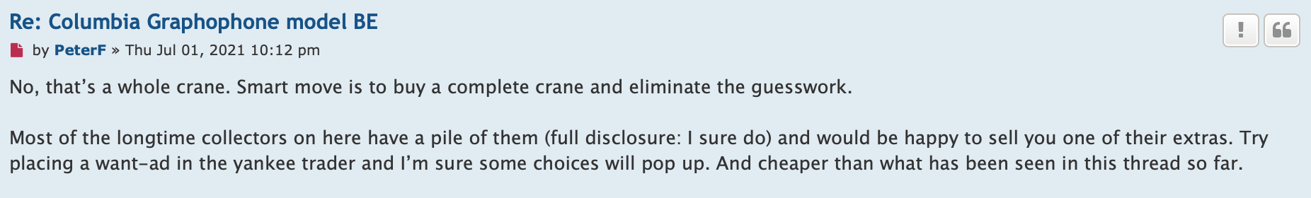 Re: WANTED - Columbia BE Arm/crane/etc conplete assembly