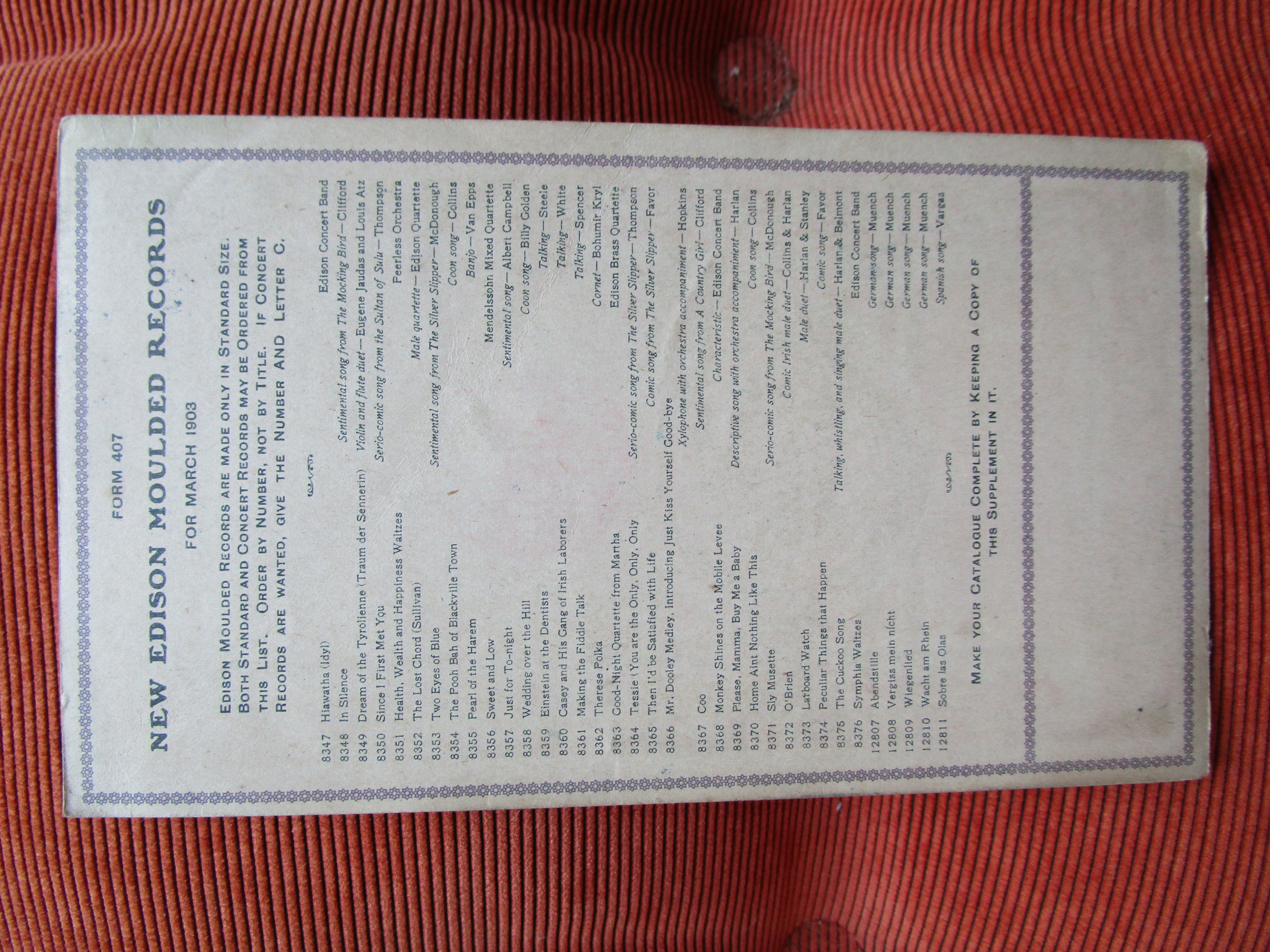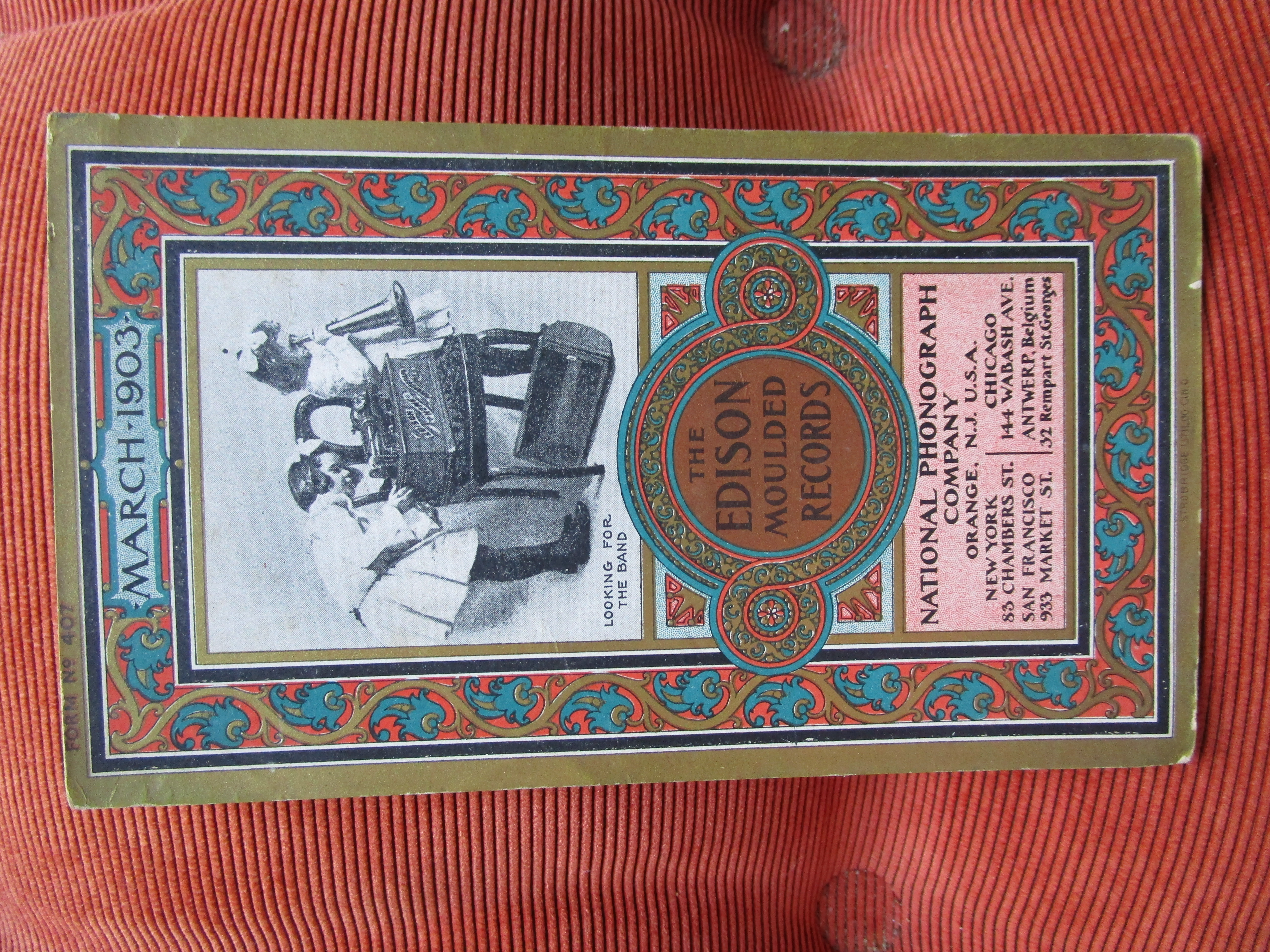I've always maintained a white knuckle grip on this particular one because I have always liked the image of the two little girls examining the early red banner Edison Home Phonograph with "Looking For The Band". This early Edison trade card is in really nice condition. I'll be kind of sad to see it go if it sells.