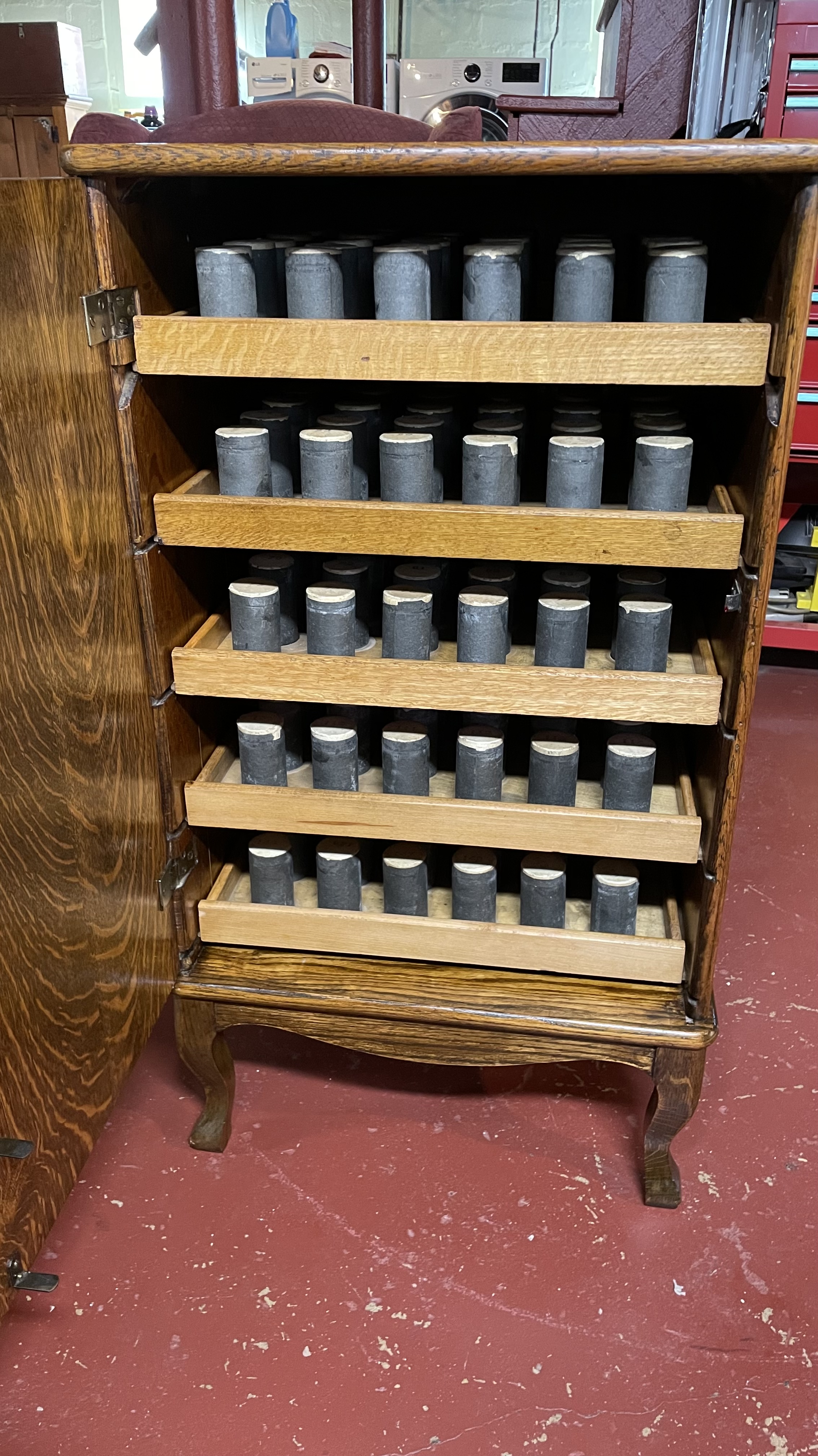 Picked up this beautiful cylinder cabinet. I believe it to be manufactured by Larkin. It has all the original numbered cylinder pegs except one which is a replacement. Can anyone confirm that or tell me who did make it.