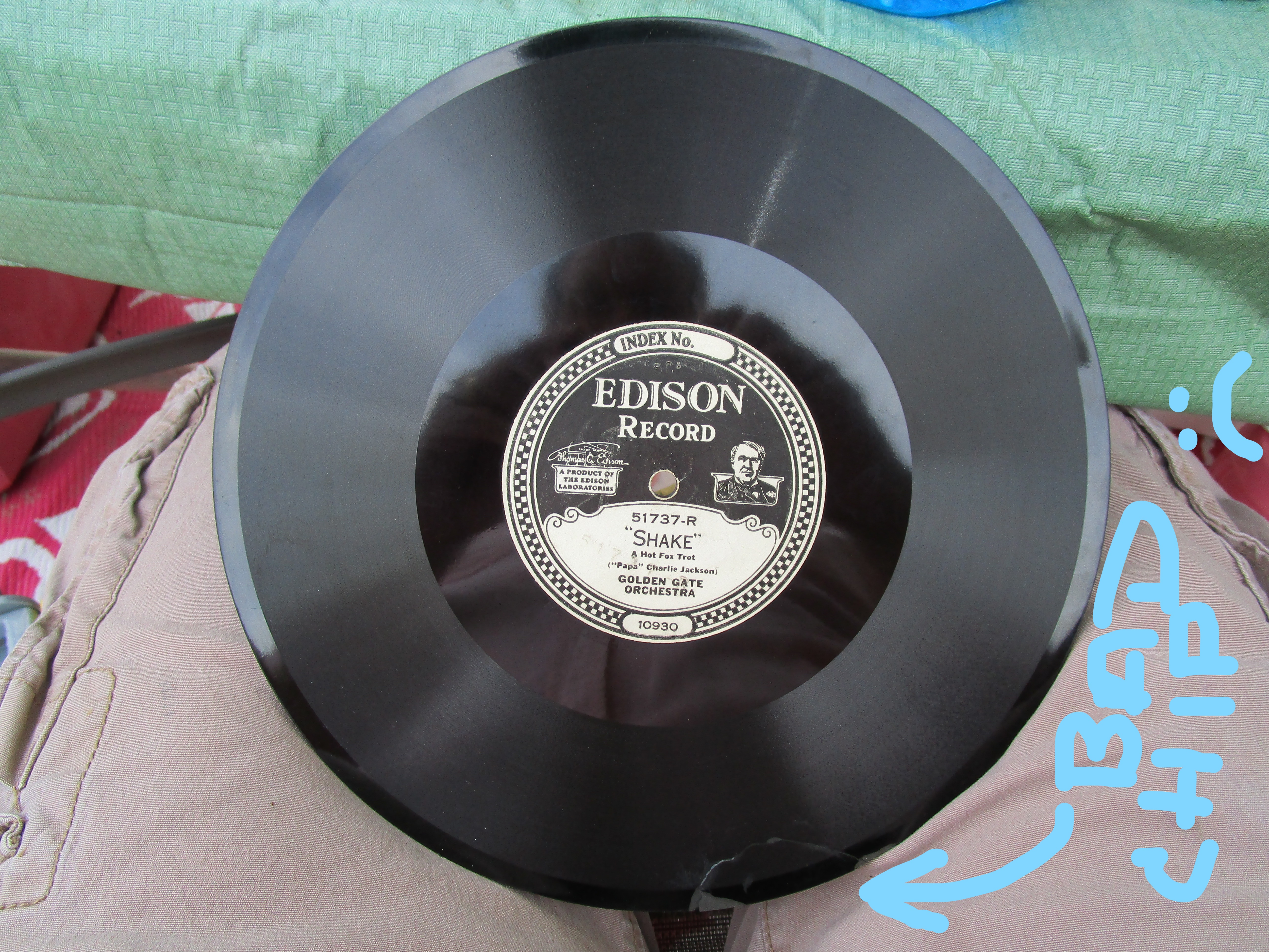 "Shake" / "What a Man" Edison 51737. $60. What A Man is Excellent. Large edge chip on Shake. PM, PayPal friends or check, USPS extra at cost.