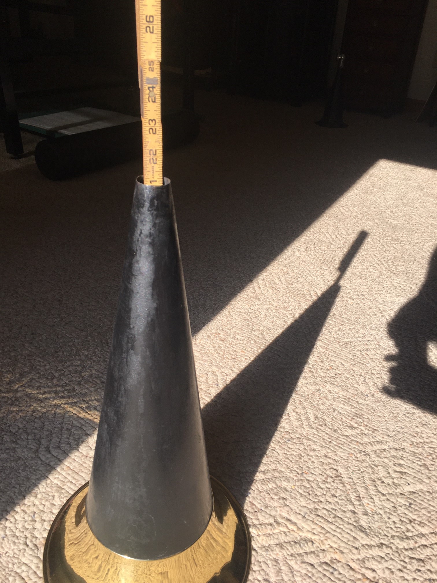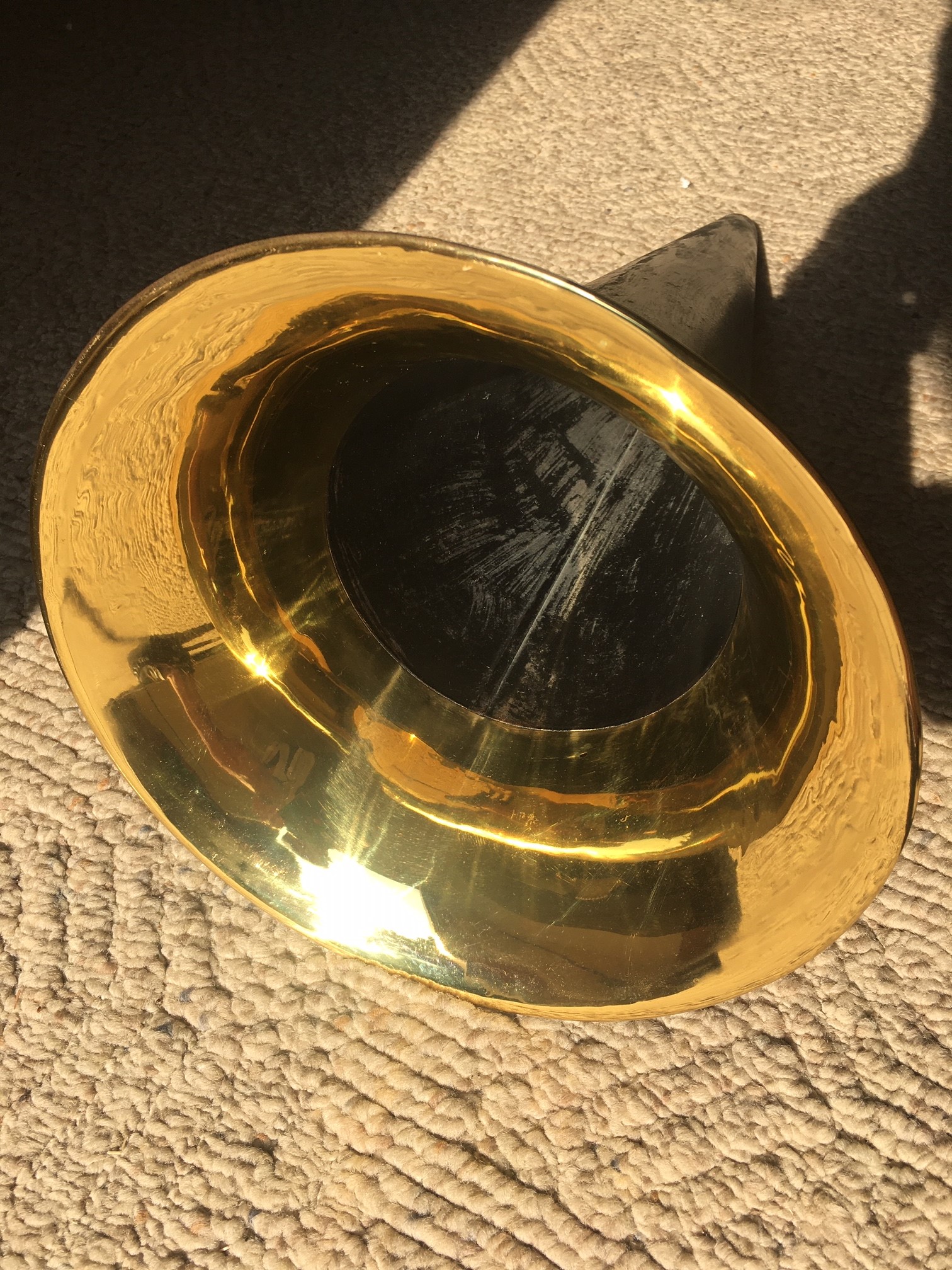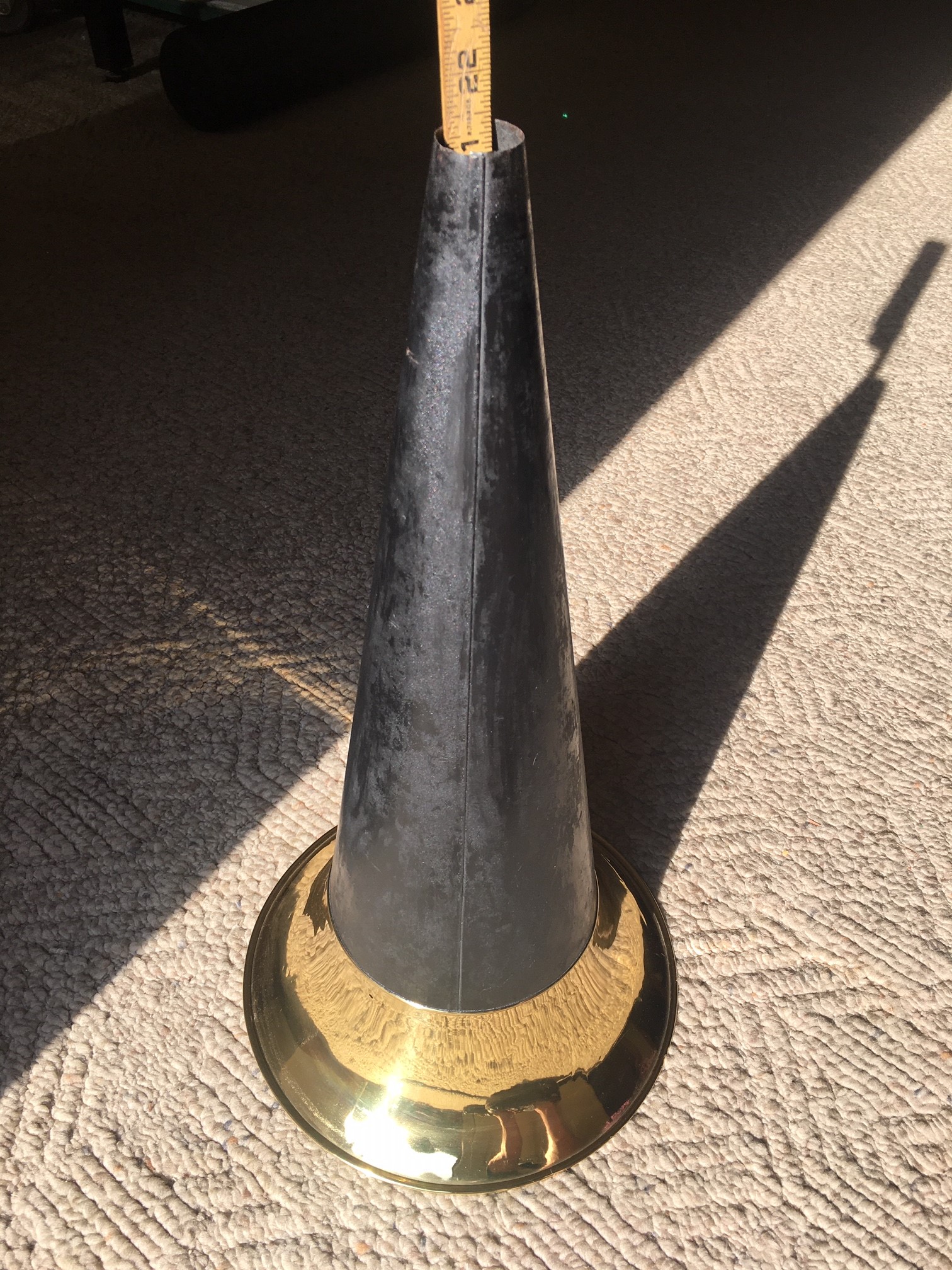 Here is a hard to find Victor horn. This horn is for a front mount Johnson M or early MS or M where the horn should be used with a leather elbow. This correct Victor Horn is 21" long with an 11.5" diameter bell. Rolled and straightened the bell has a tiny perforation that does not detract from the beauty or sound quality of the horn. Paint is how I got it and could be re done by the new owner or proudly used as is. $125 plus shipping. Call, PM, text or email to purchase. Thanks for looking! John Duffy 860-966-2827