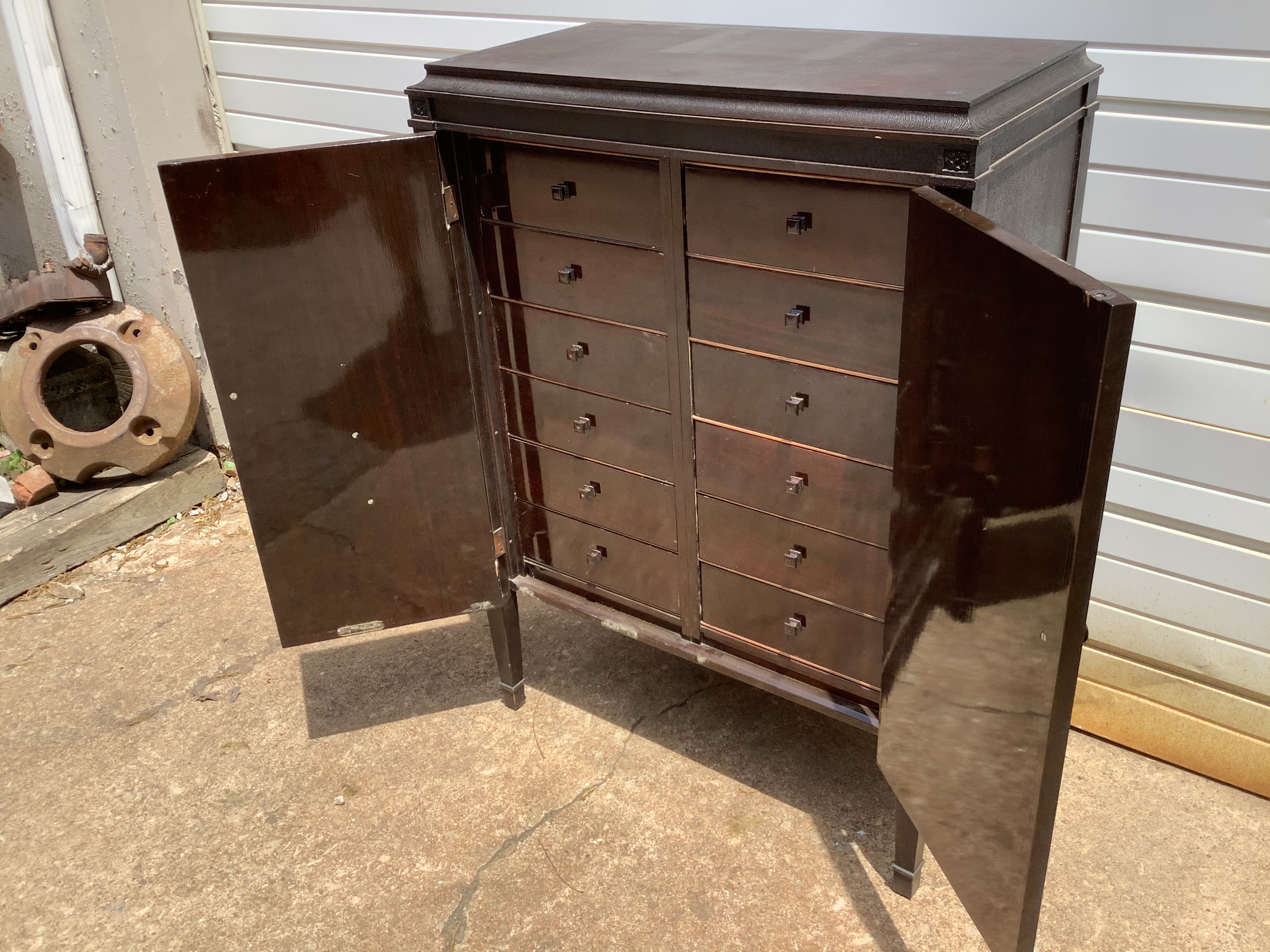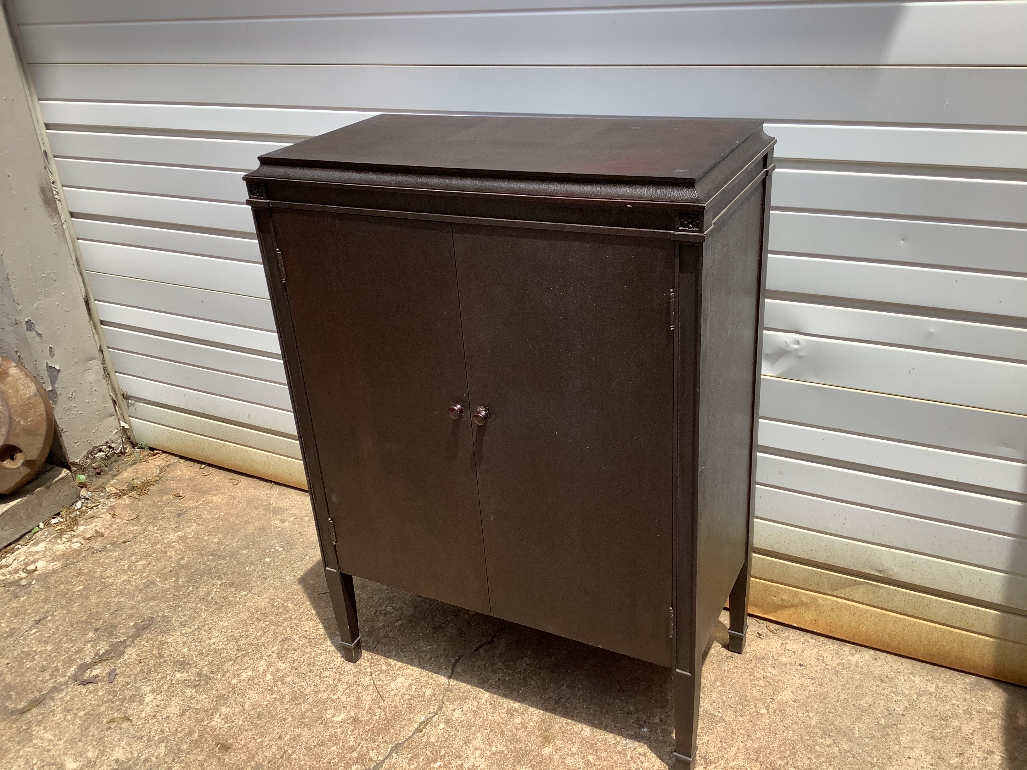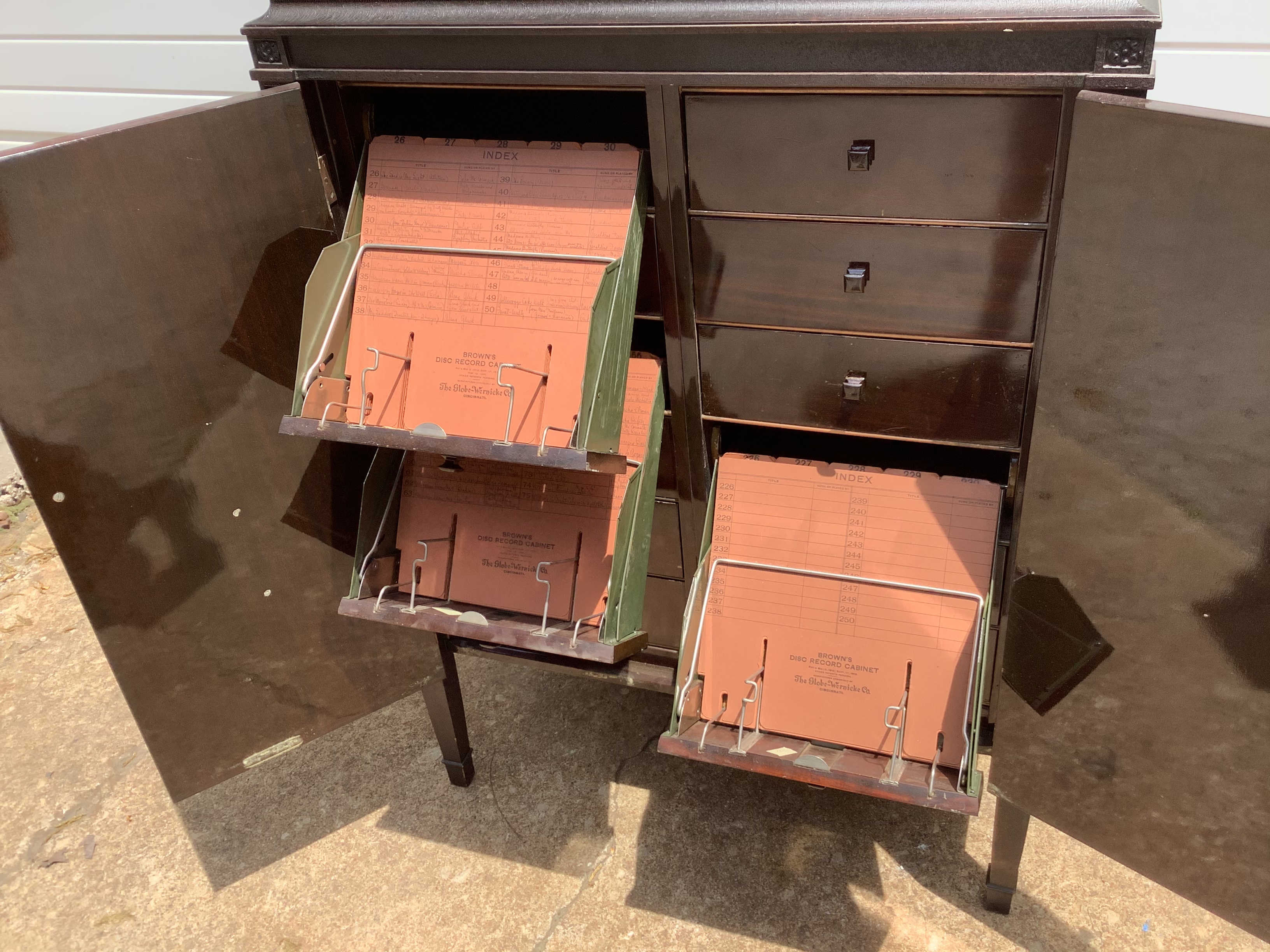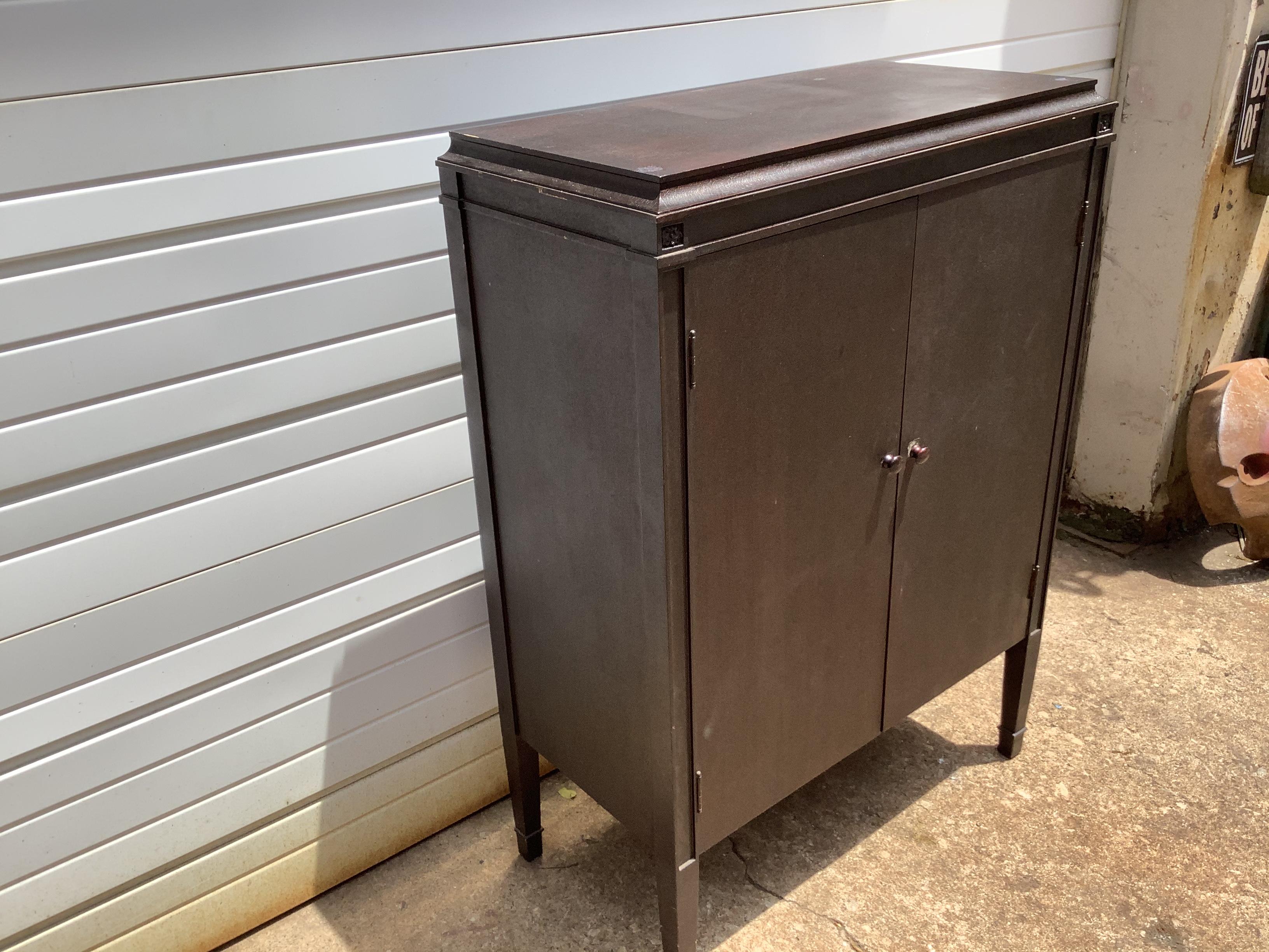 We have a beautiful Globe-Wernicke record cabinet for sale. If you have never seen one of these in person, they are as high of quality piece of furniture imaginable. Beautiful mahogany construction, tilt drawer mechanism that puts your precious record collection at your fingertips. This example has a wonderful original finish. The outside is darkened and alligatored, but throw open the doors and you can see the magnificent original mahogany piano finish in its glory. Enjoy as it is or an easy refinish of the outside will blow your socks off. $750 , we are glad to safely store until pickup is arranged. There are people in the hobby that offer blanket wrap service, and this certainly deserves that treatment. [email protected] to reach me, and we are located just minutes from TA Edison’s birthplace, so kill two birds with one stone!
