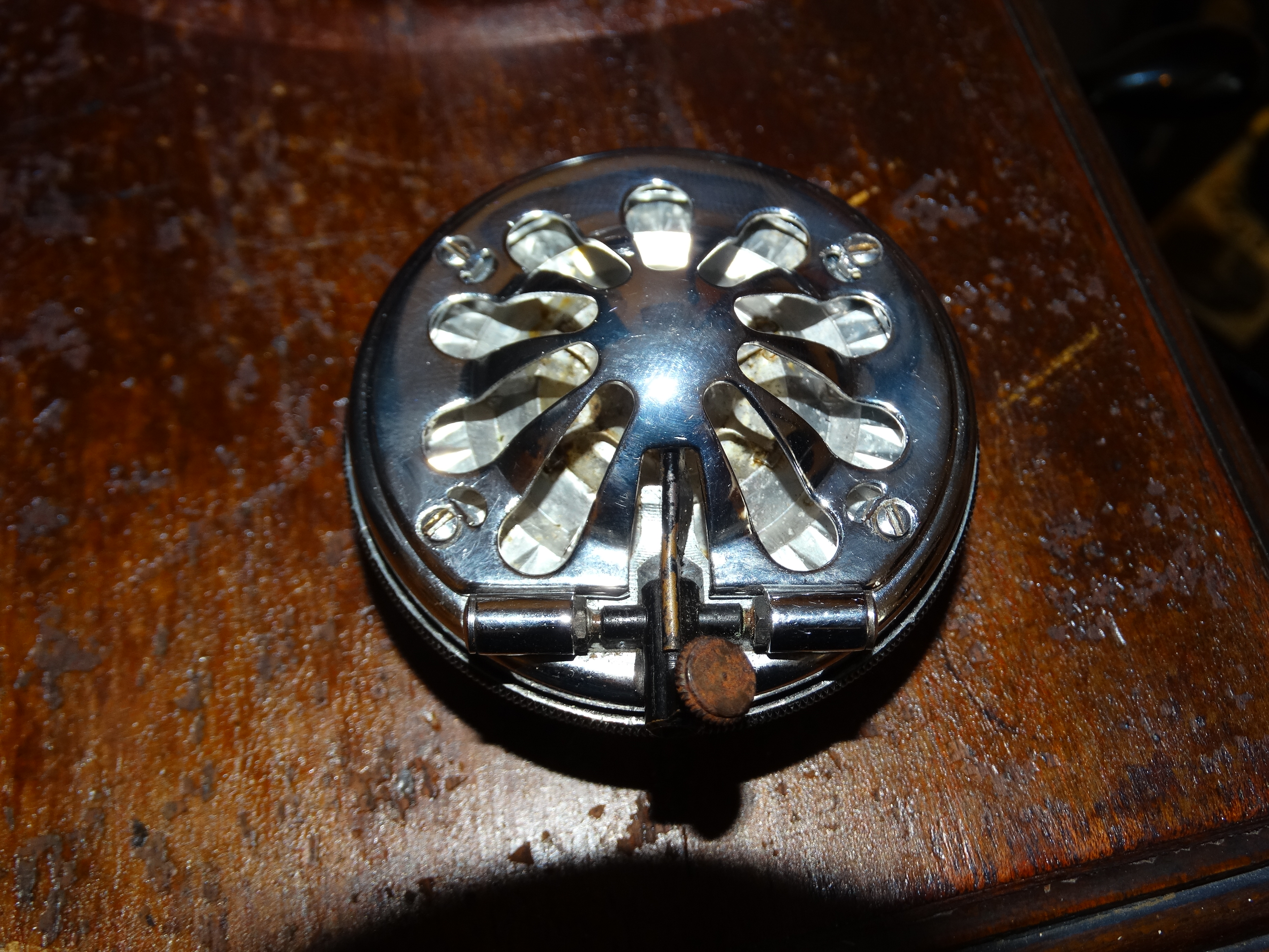 The good is that it is complete, the handle still has its leather, it has its record tray and it's 5B soundbox, it runs quiet and its an honest machine, the nickel is good.
