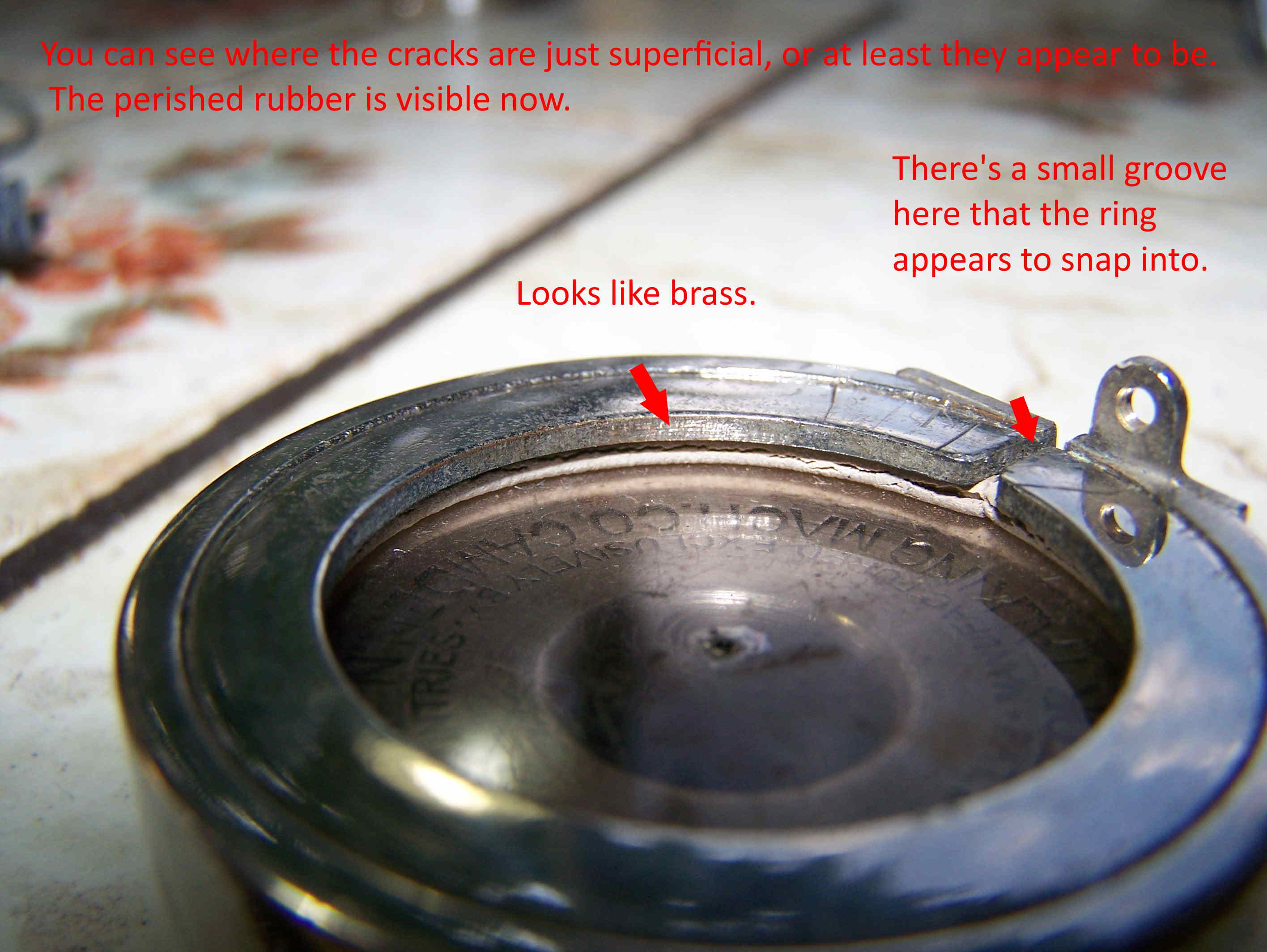 There are no screws, the diaphragm is held in there with a brass snap ring, I was worried it was pot metal, but it turned out to be brass.