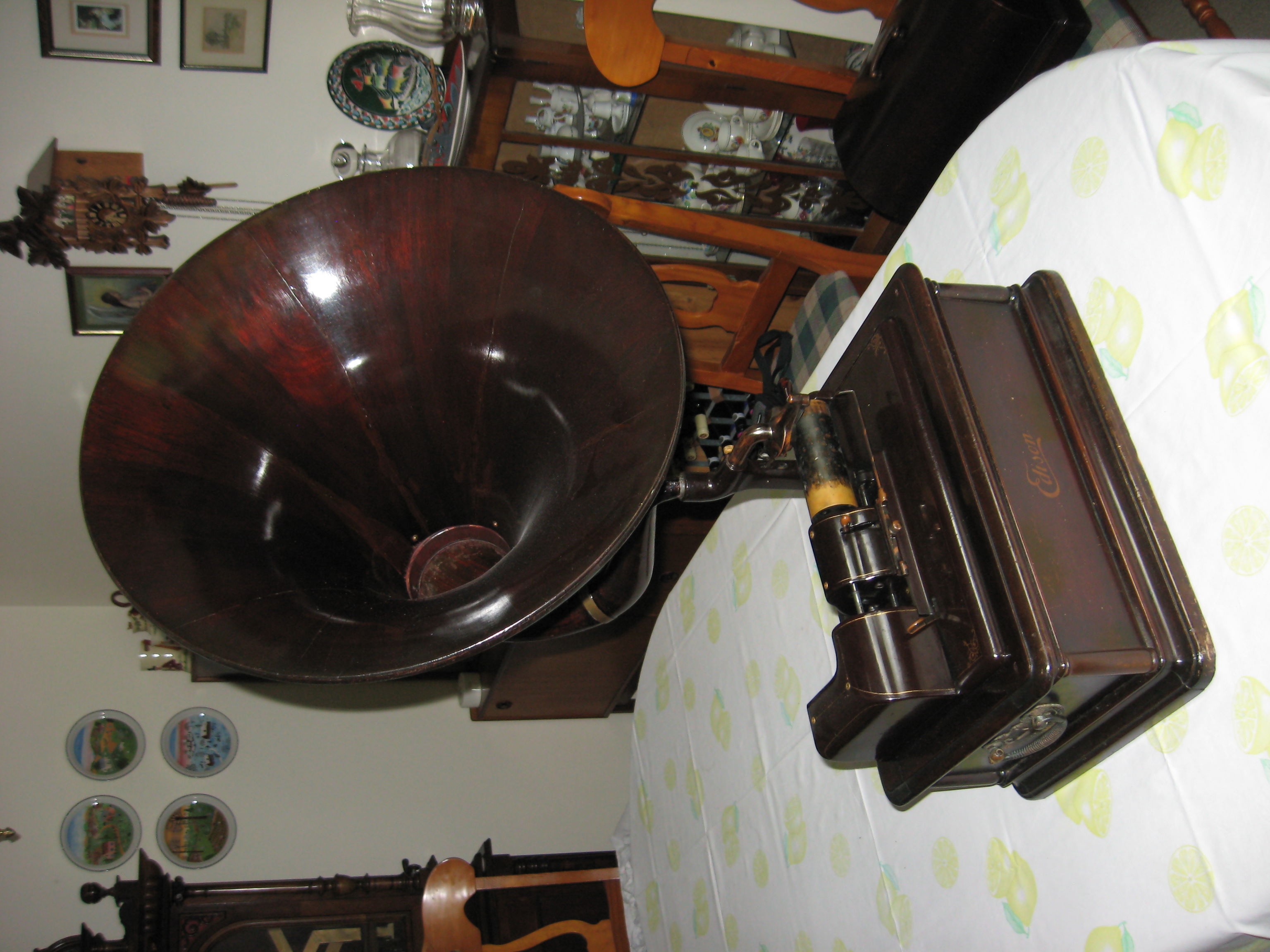 The pictures show it "as found". The ferrule at the narrow end of the horn elbow has had a repair which I can improve upon, and the reproducer would benefit from a service, but otherwise there is little that needs attention.