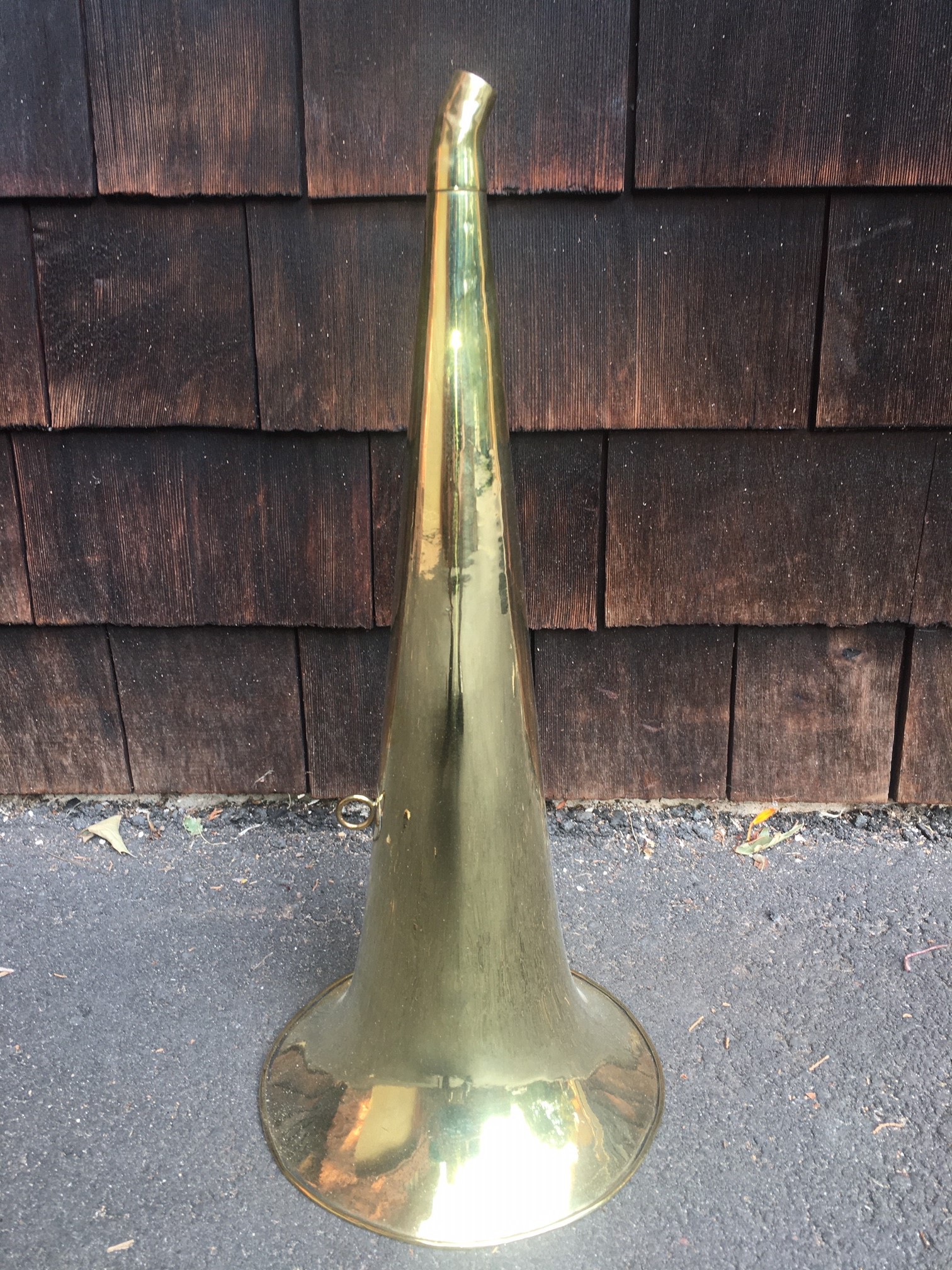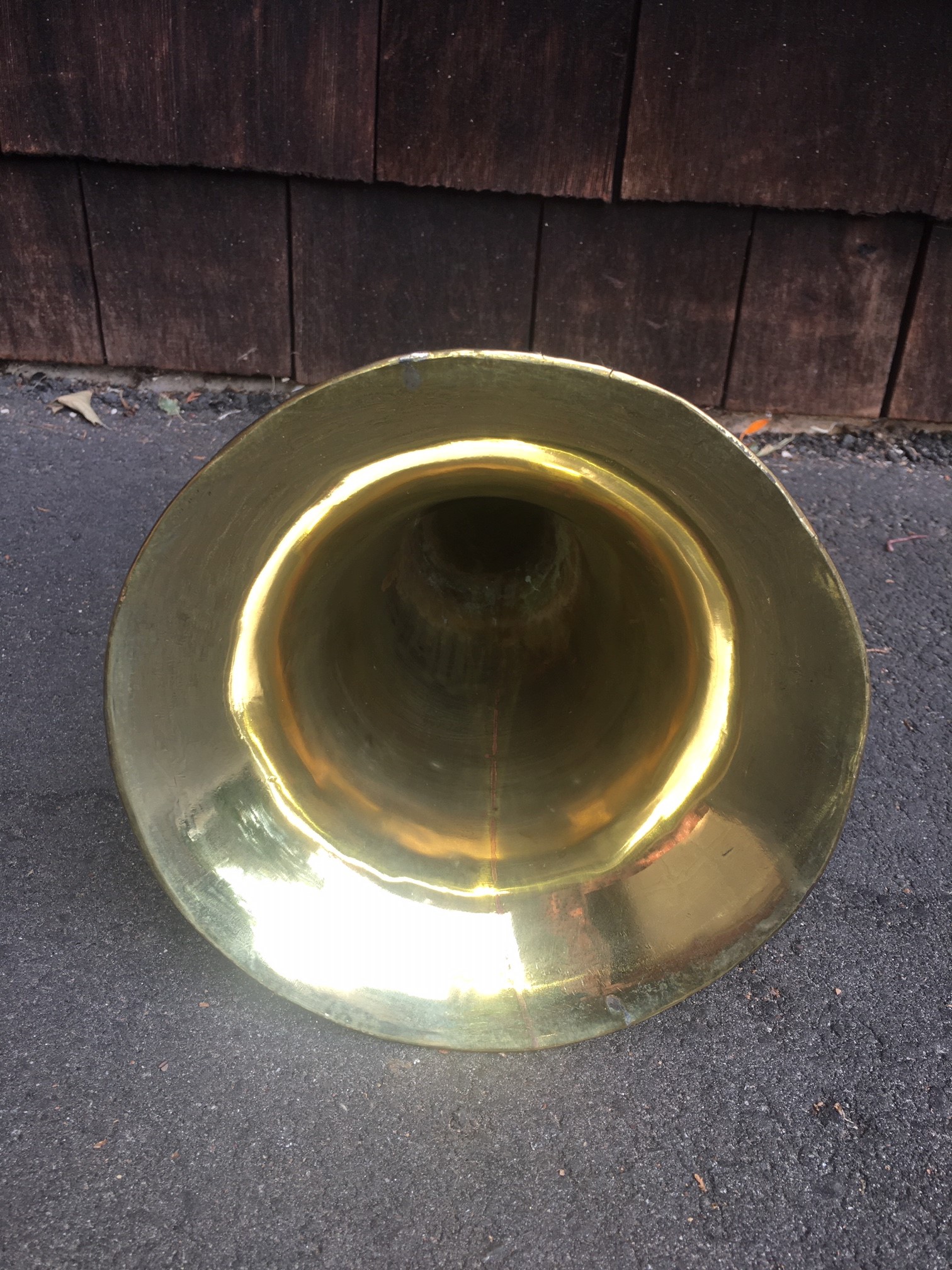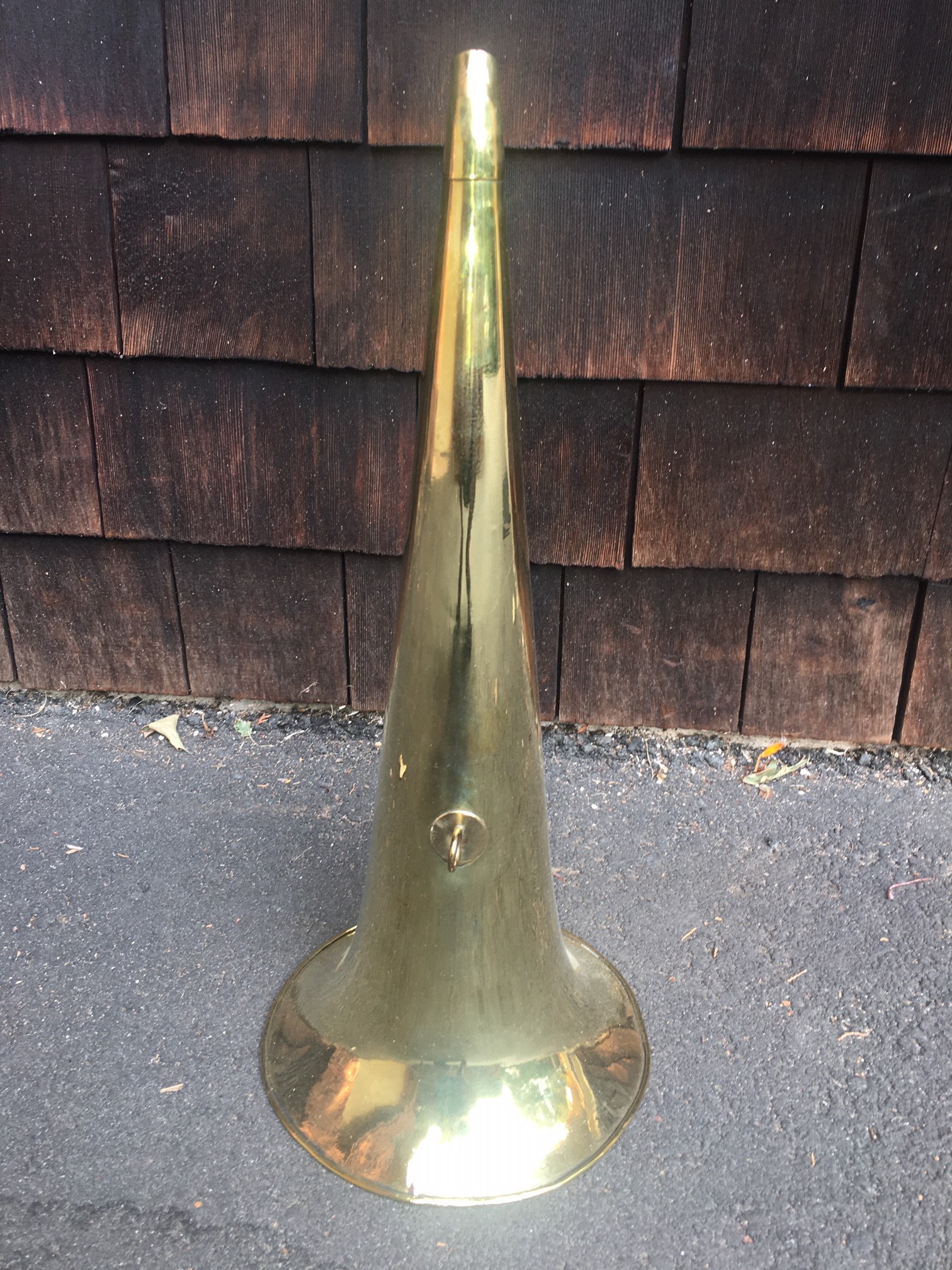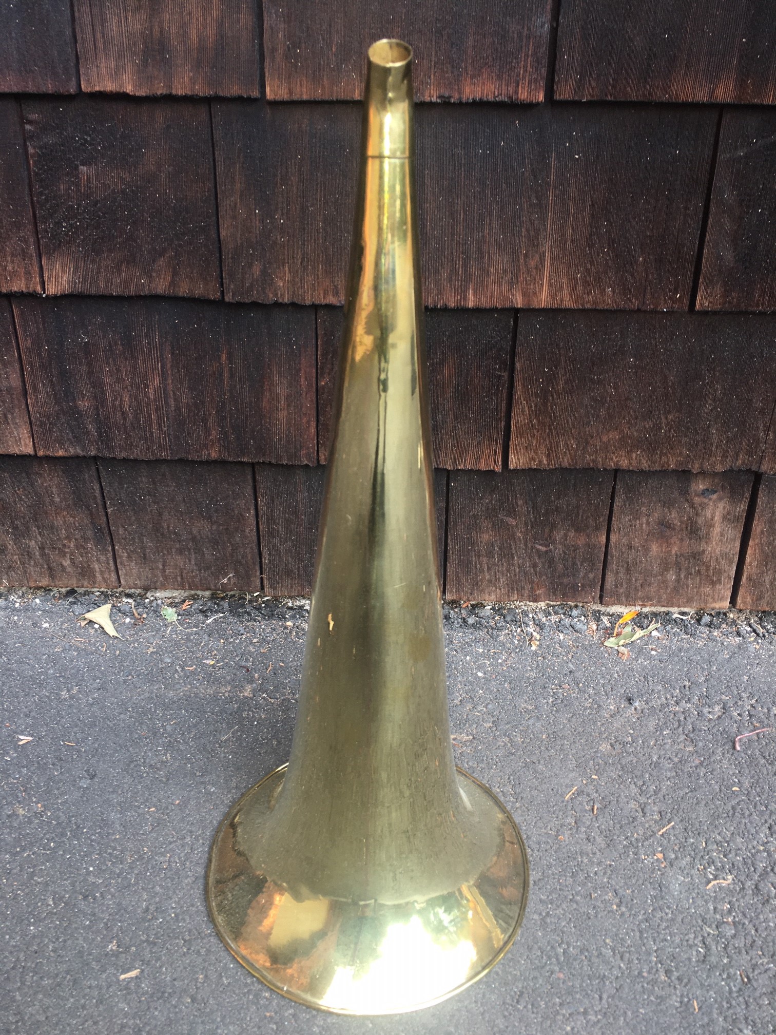 Hi Here is another interesting horn to complete your machine. An 18.5" long with 8" bell all brass Hawthorne & Sheble horn. Hard to find in any condition this one has been rolled and straighten. Polished to a mirror shine. There are two minute rim cracks that do not detract from this horns beauty. $275 plus shipping to your location. Please cal, PM, email or text to purchase. Thanks! John Duffy 860-966-2827