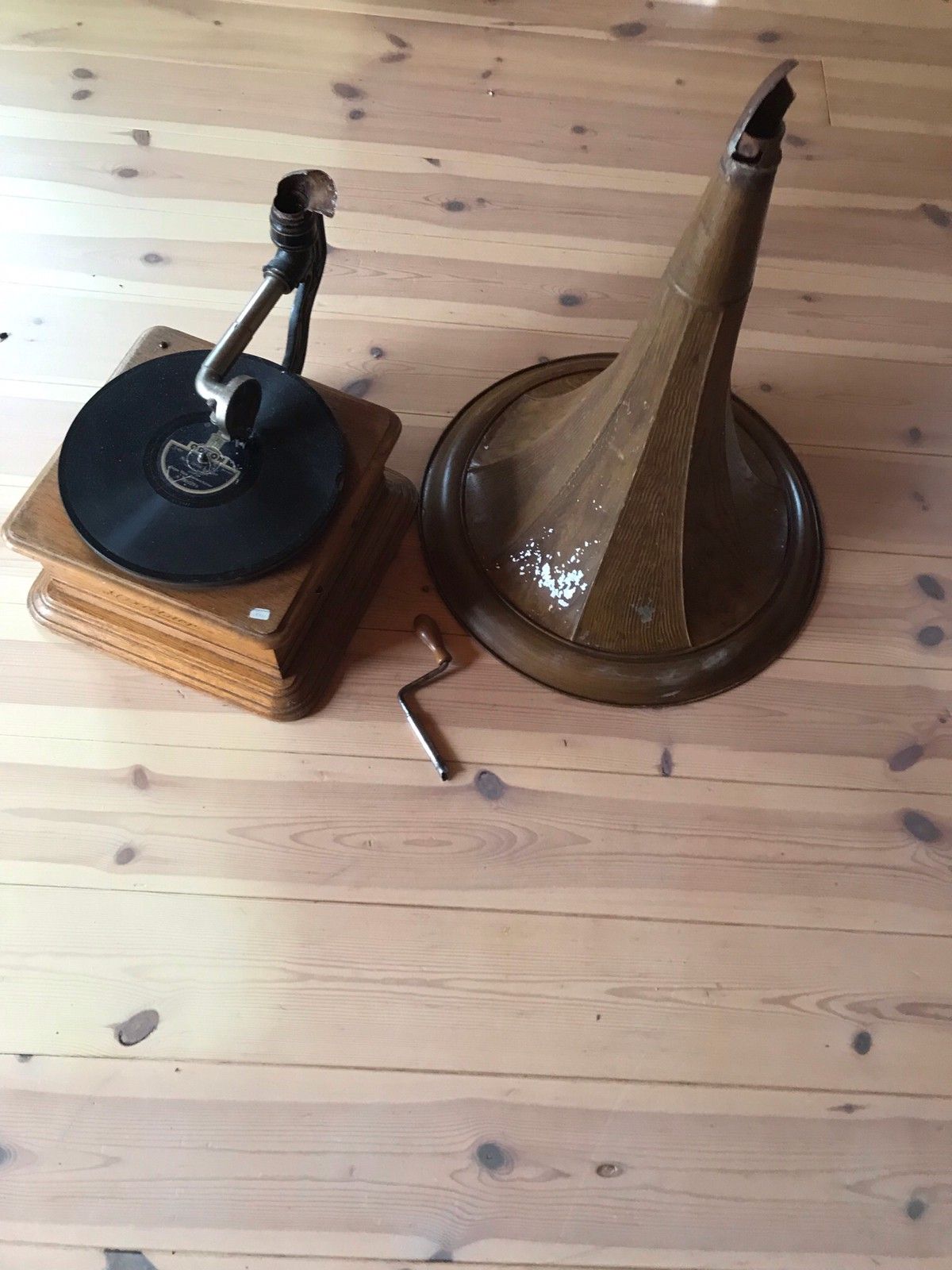 Whateter state it is in, there is still a horn, cabinet, soundbox, and a winding handle...