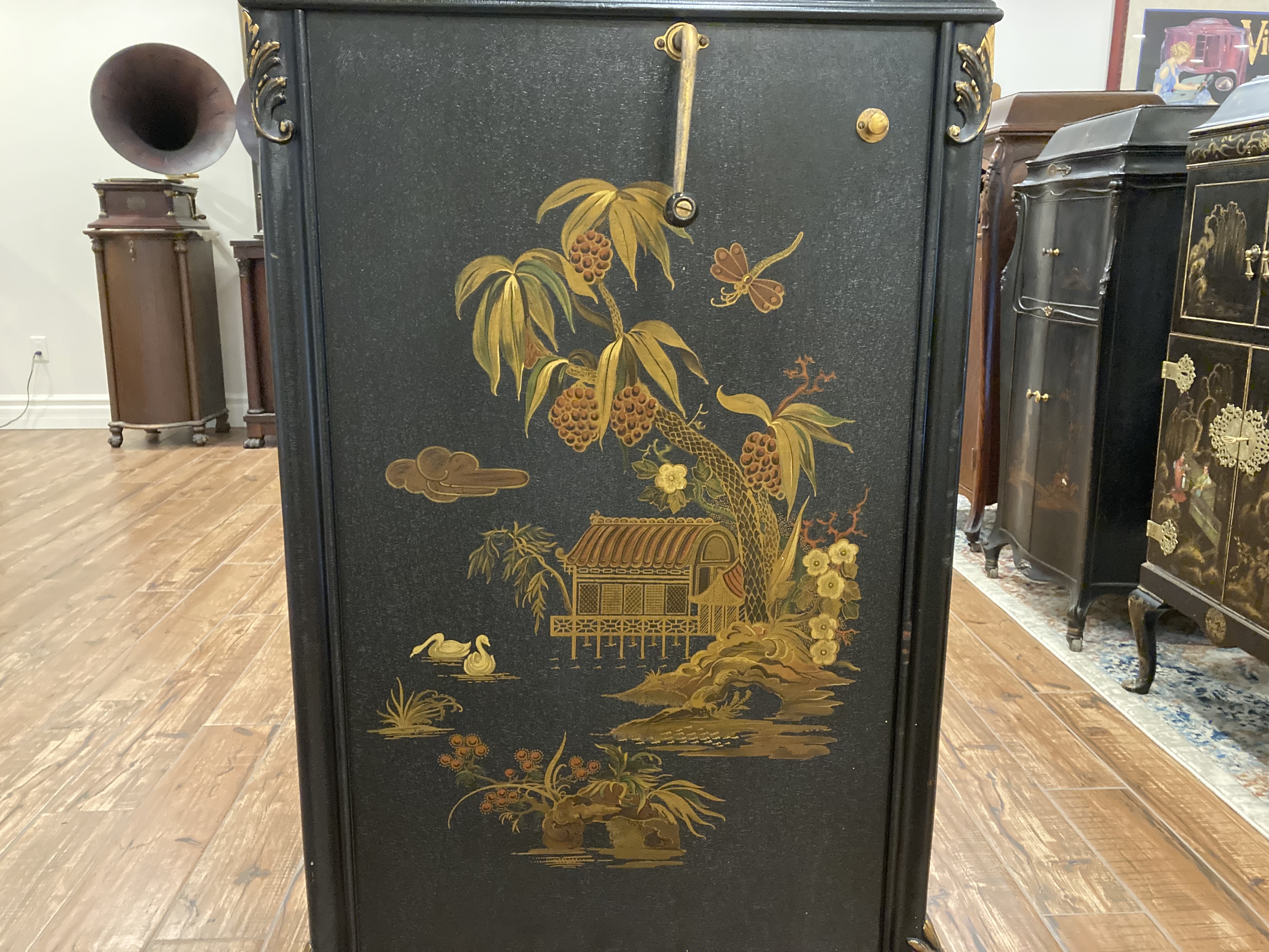 My wonderful wife added another find to her credit last weekend, she named it Ki Ki . It is a Brunswick 127 finished in a Japanese motif. It had been in the same family since it was purchased new .