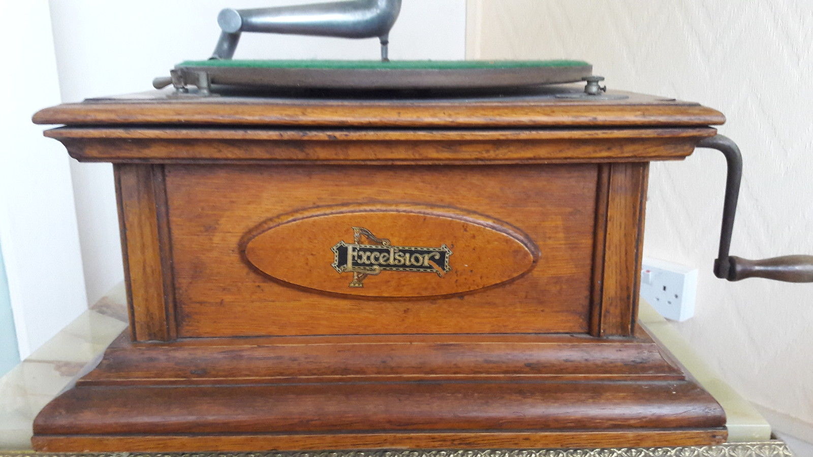 Excelsior....could it be Excelsior Werke Cologne, but I understand the Excelsior name also was used by providers of gramophones. I was able to find this information from a past thread: