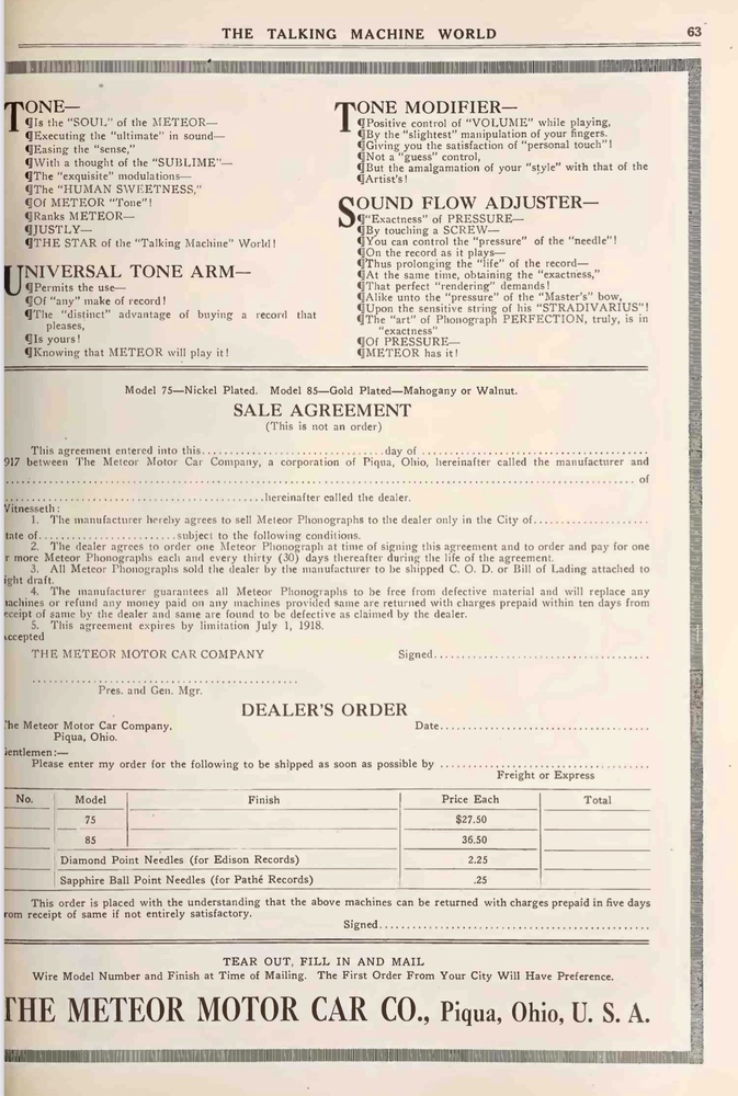 Here’s the only ad that I can find theat Meteor bought in “Talking Machine World” on pages 62 and 63 of the May 1917 issue, available for download from the World Radio History site: https://worldradiohistory.com/Archive-T ... 917-05.pdf