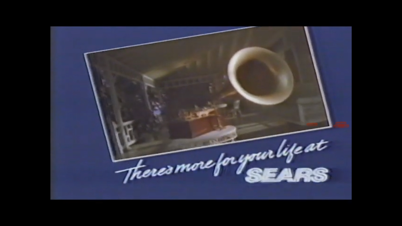 Not a movie or TV show, but a 1985 Sears paint commercial! Unfortunately the audio singing their jingle at the time sounds “canned” and they added this skipping effect like the half nut was out of adjustment!
