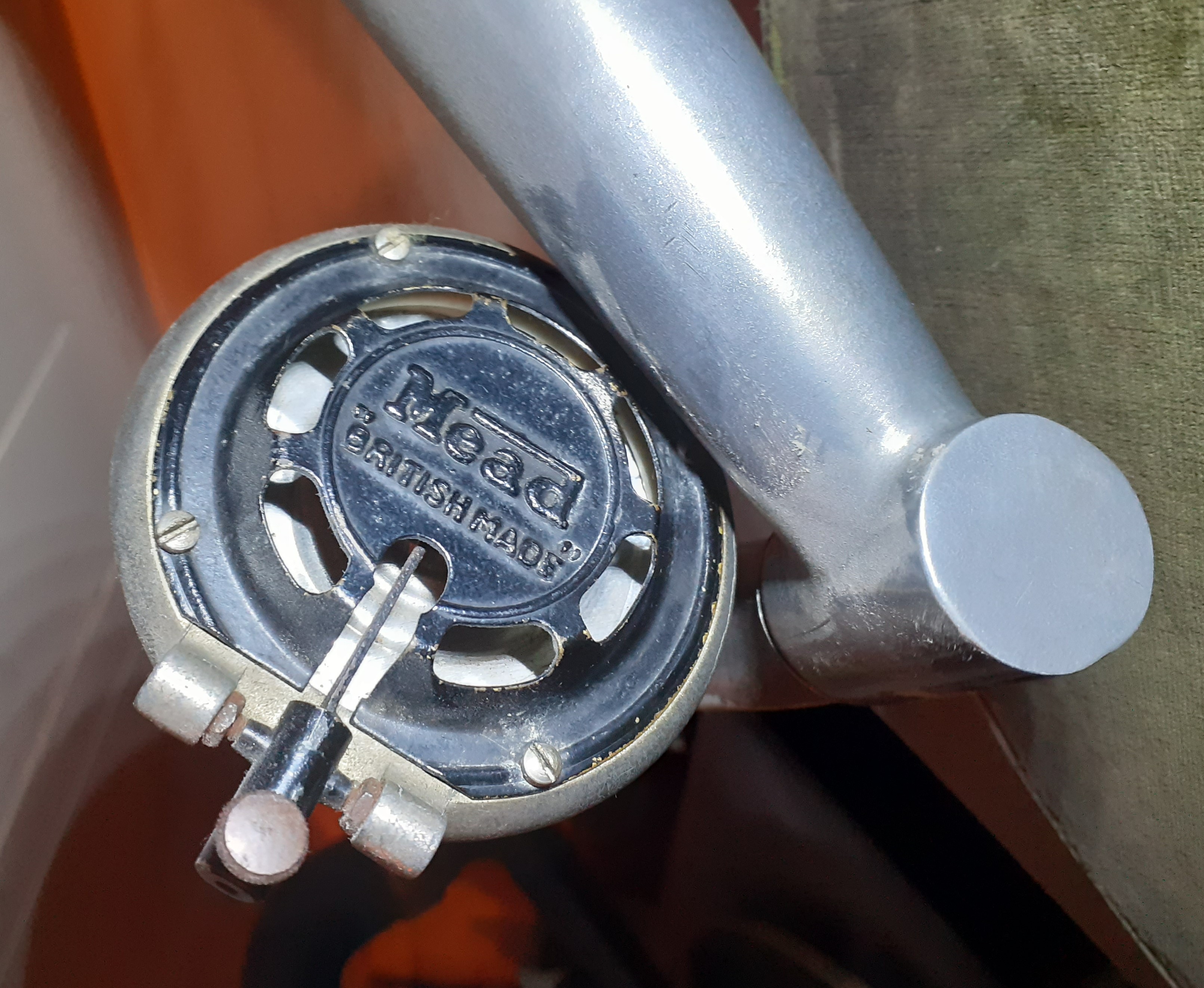 It’s branded ‘Mead’ in Birmingham, of course it’s a typical Swiss made machine though, I’m not sure of age on these things, I guessed around 1910-15, the horn is very attractive, I’m not sure if it would have originally been white, but I like it as it is, and the rest of the gramophone is very nice cosmetically.