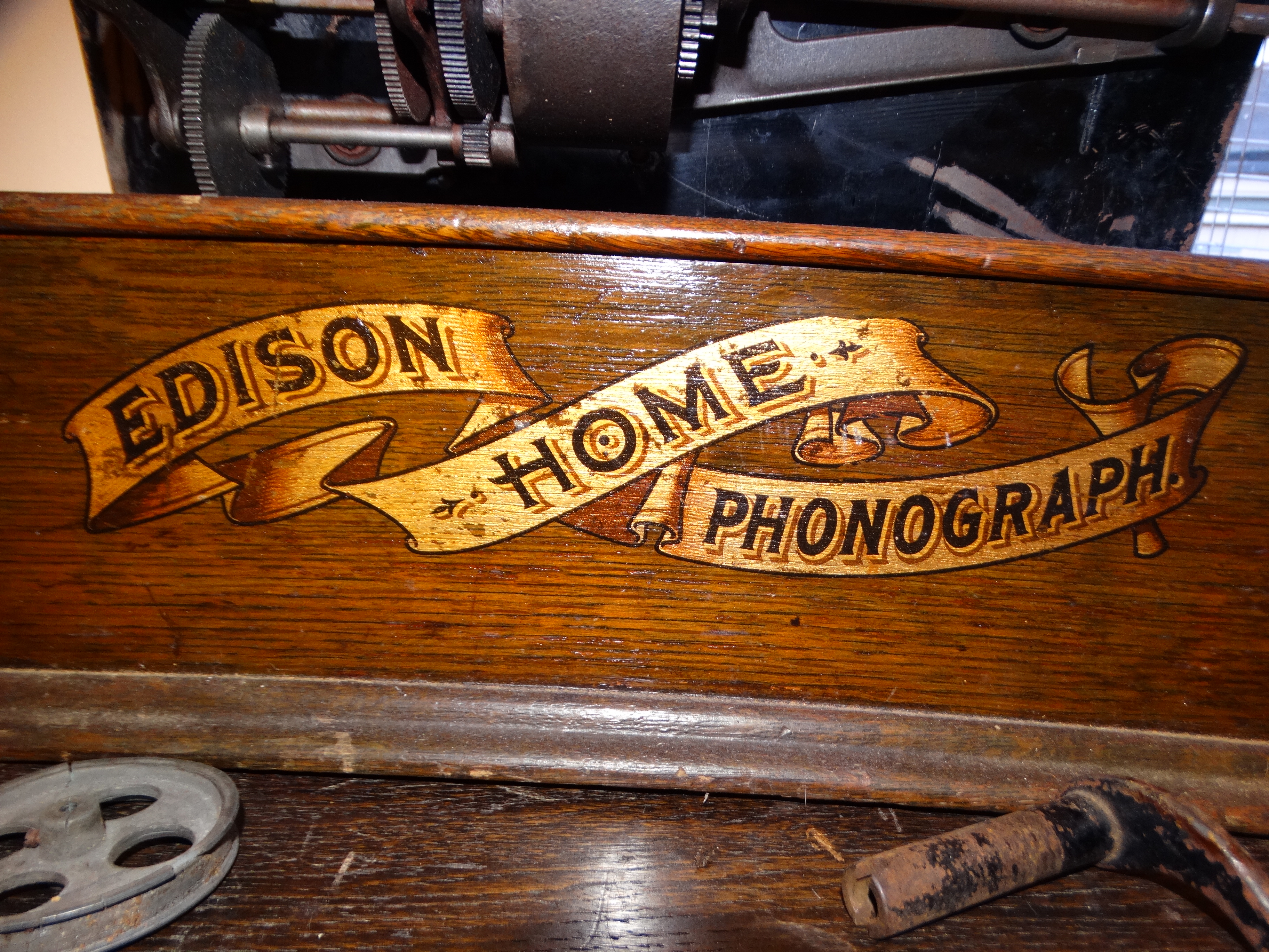It's a longcase home S/N 86302, the cabinet decal is good and it shouldn't take much to get it running, the motor seems to want to go so the spring seems fine, it has the winding handle, though no lid, as far as I can see that it needs is as following: