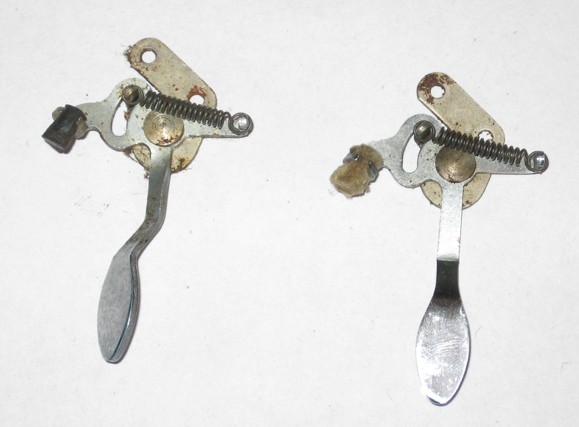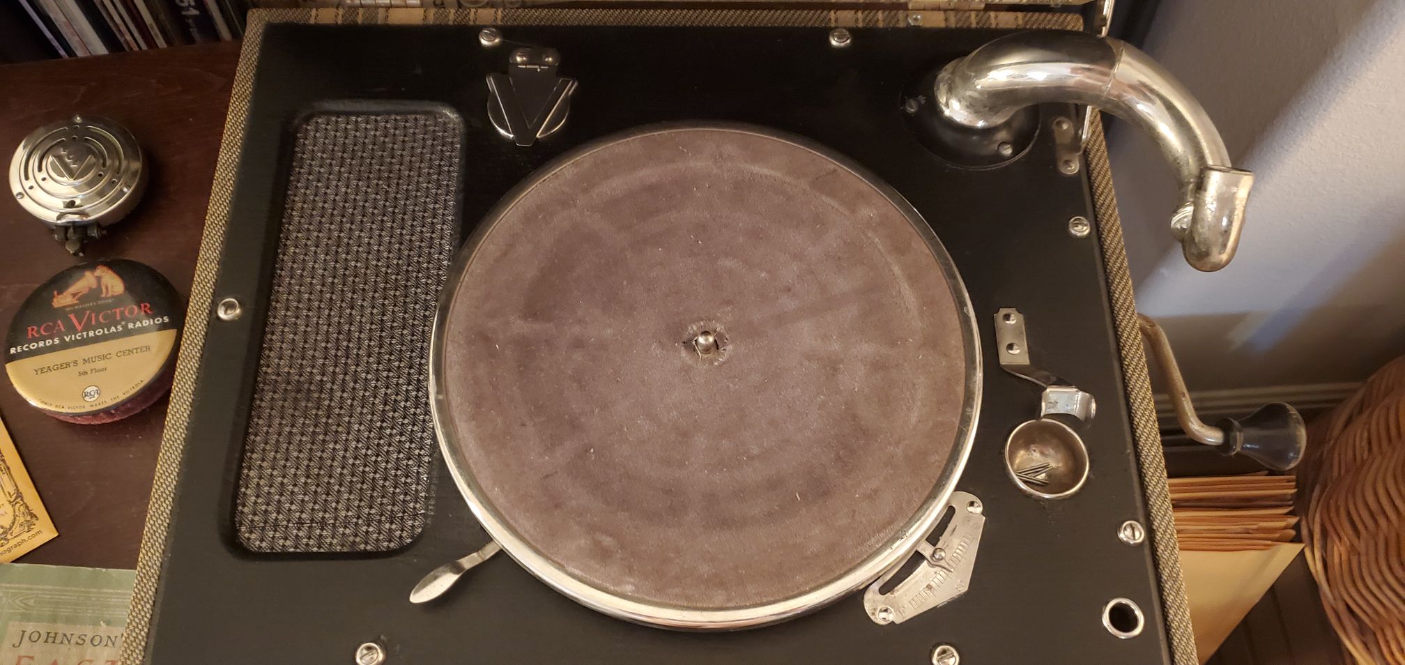 I have a 1939 RCA crank windup portable model with a little brake pad that engages with the platter when moved over to stop the disc - however, the little brake pad seems to be worn or 'unlubricated' to a point where it no longer acts smoothly (allowing the disc to spin a couple of times before reaching a complete stop) and instead stops immediately once engaged. I read online that this could potentially be harmful to the motor and was wondering on how I could remedy this - I was thinking about either lubricating it or replacing the felt, but was unsure on what exactly to do.