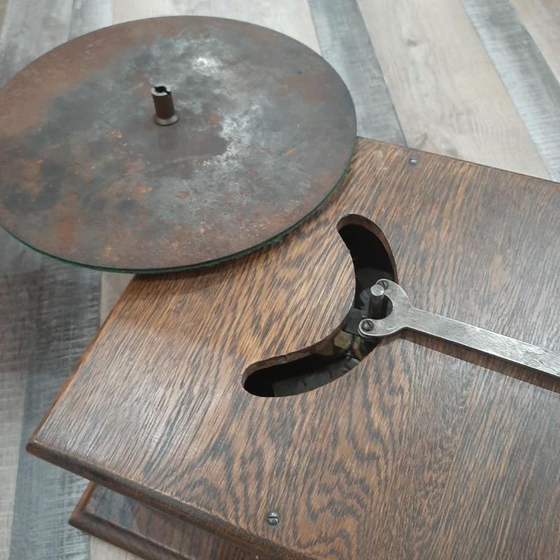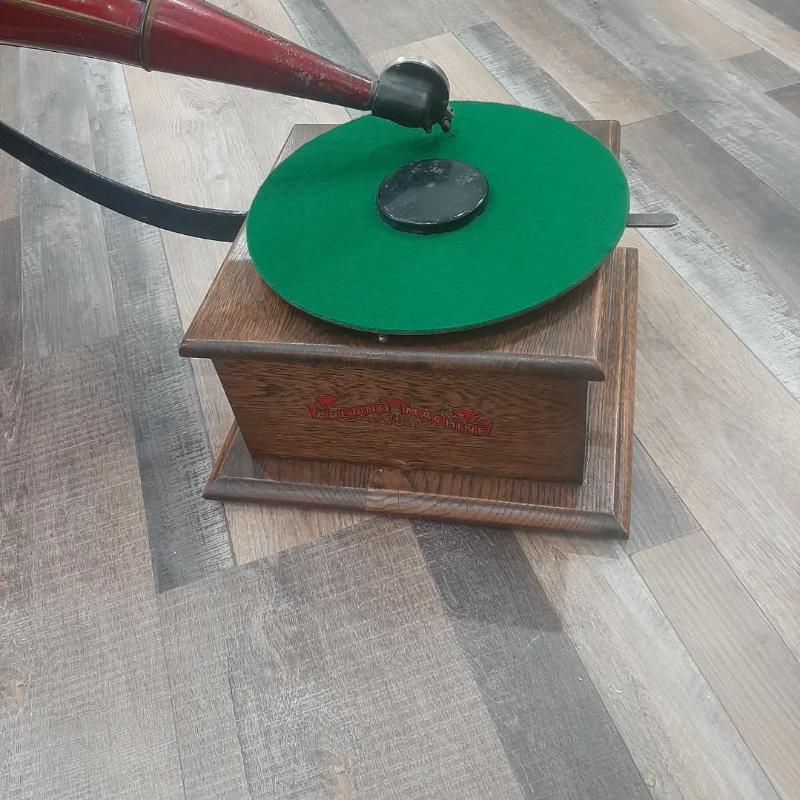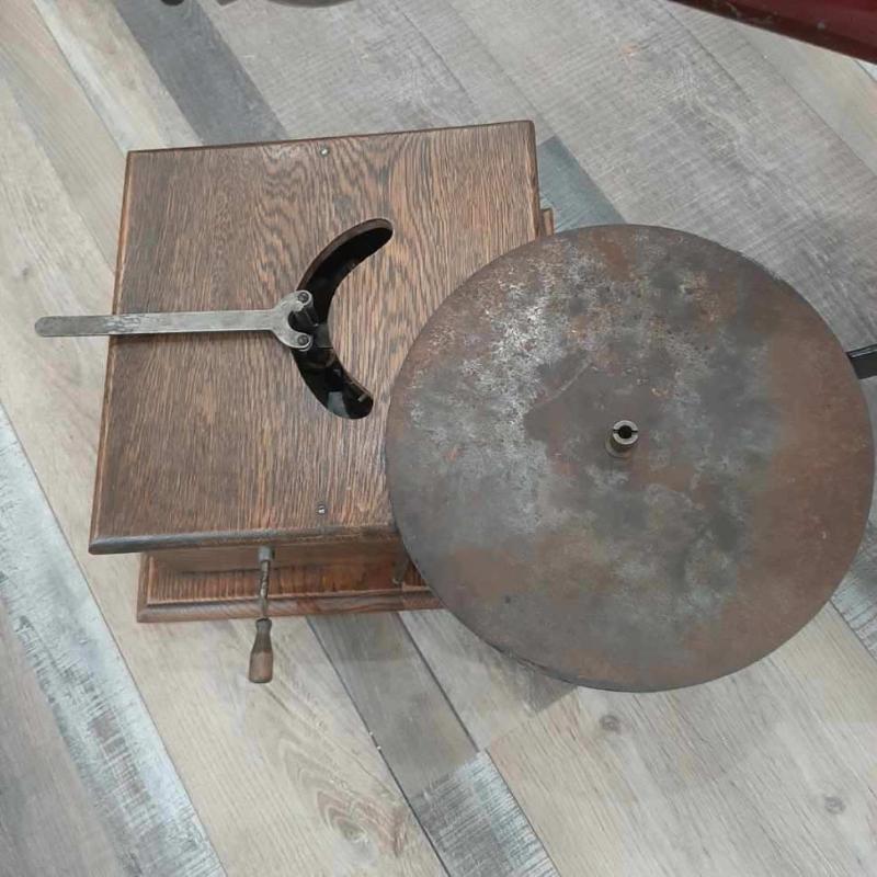 Here is a very rare Aretino front mount that incorporates the mechanical feed turntable. The reproducer is in a fixed position with the horn, and the turntable moves under the reproducer. I will Quote from the Fabrizio & Paul book THE TALKING MACHINE An Illustrated COMPENDIUM on page 138 towards the bottom It reads " In this " Aretino" of 1909 Hawthorne and Sheble finally achieved in design what had been attempted by subterfuge until then: true mechanical feed. The turntable tracks under the fixed soundbox. Here is your chance to own a rare machine at a minimal cost. This machine has the original reproducer as shown. Also, this machine takes a different support arm than the traditional Aretino front mount. Everything looks to be original except the decal which is a Gregg Cline reproduction. I can deliver this to the upcoming Donley auction for free. There will be buyers there traveling all directions if you are interested. I will be out of the country from Dec 2 - Dec7