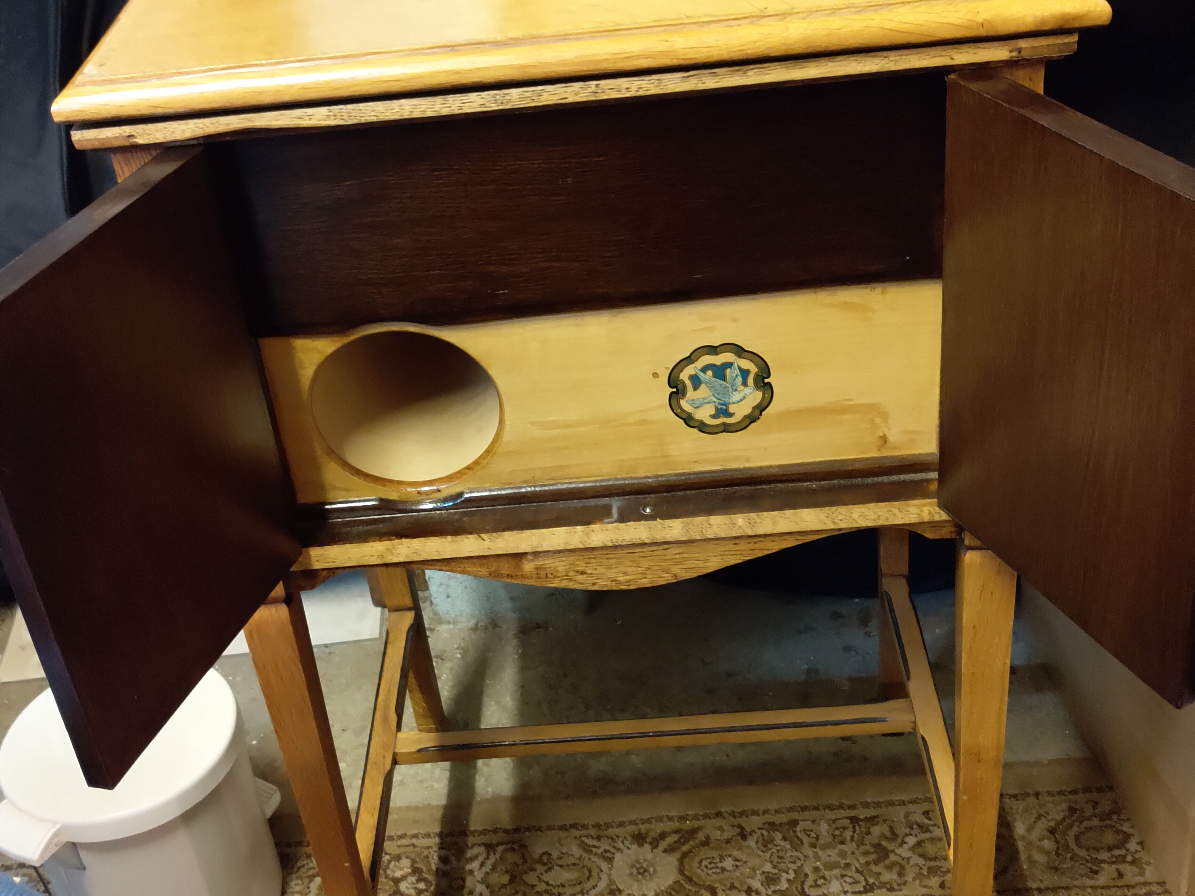 Here is the thread, where I showed photos of the first Triumphon I restored, as we can see, it also has different wood types/finishes on the exterior and interior, also before I stripped the darker wood on the machine, the lighter wood was never touched.