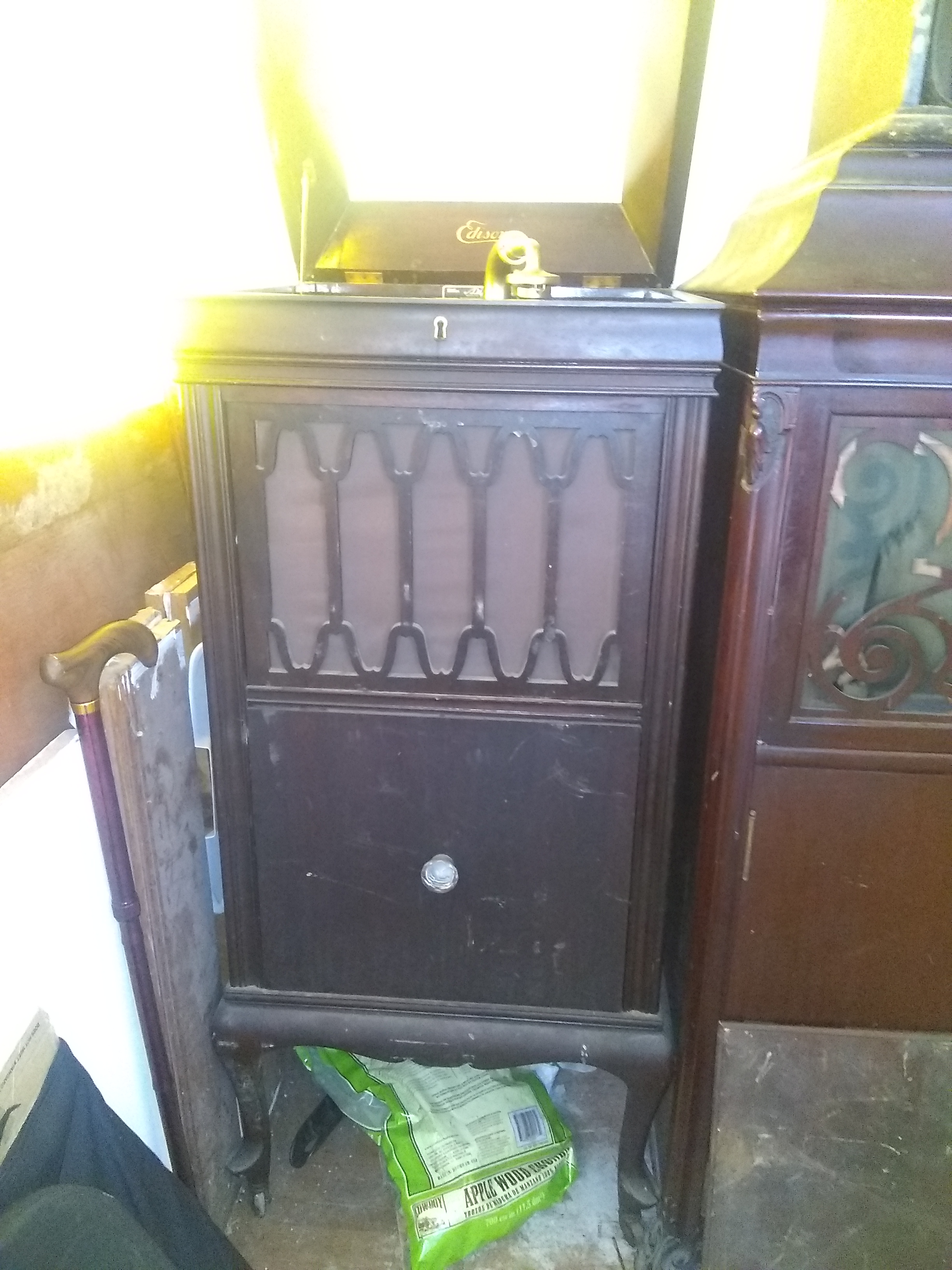After many years of back troubles my Doctor and my wife have declared "No More Upright Phonographs". Over the next few days all uprights & consoles (with the exception of my Schubert and my Brunswick York) are being offered for sale. We are less that 3 hours south of Union, Il, so if you are going to Donley's Dec. 11-12 auction, you could stop by on your way to or from! You will need to bring help to load (I am under strict weight limits these days). If not. I can store until it is convenient for you to pick up.